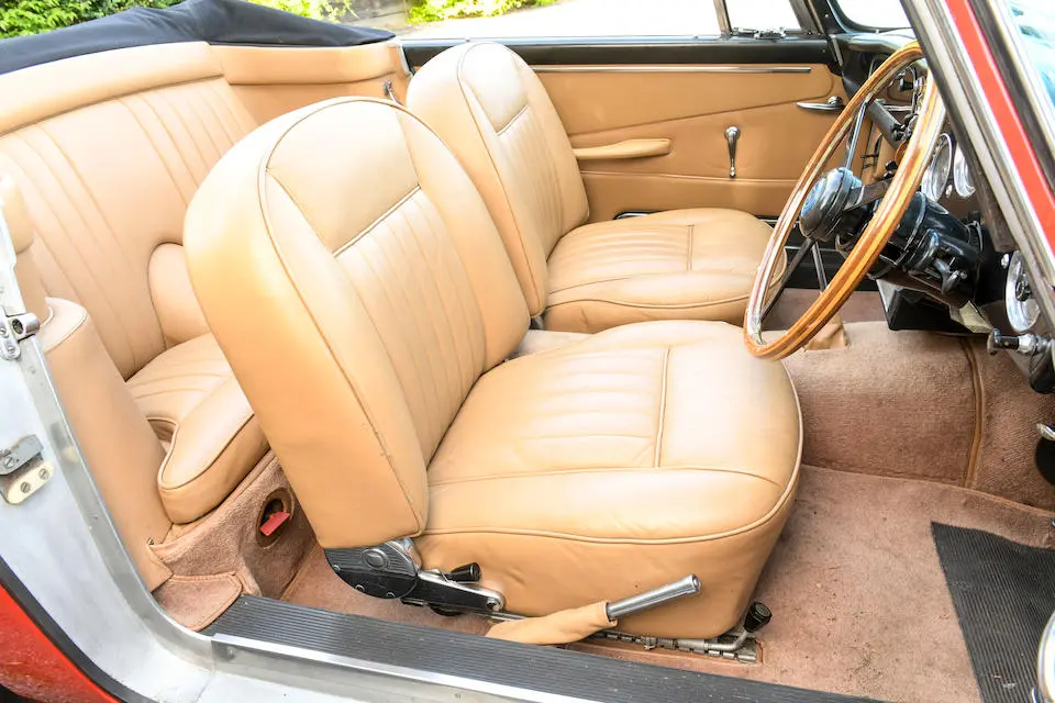 DB4C/1029/R : 1963, DB4 Convertible, moteur 370/1163, Fiesta red, capote noire, cuir noir.