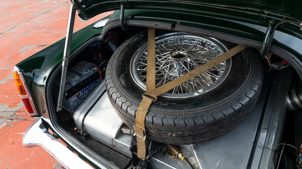 Moteur 4,2 l converti au sans plomb, pistons Ross, vilebrequin nitrité EN40B, arbres à cames plus pointus Kent, distributeur électronique 123, boîte de vitesses à 5 rapports Tremec (boîte d’origine conservée), différentiel autobloquant, embrayage renforcé Tilton, commande hydraulique, arbre de transmission équilibré, amortisseurs Koni av., ressorts réglables Harvey Bailey, barre antiroulis, double servofrein de DBS, climatisation, direction assistée, toit ouvrant, radio.