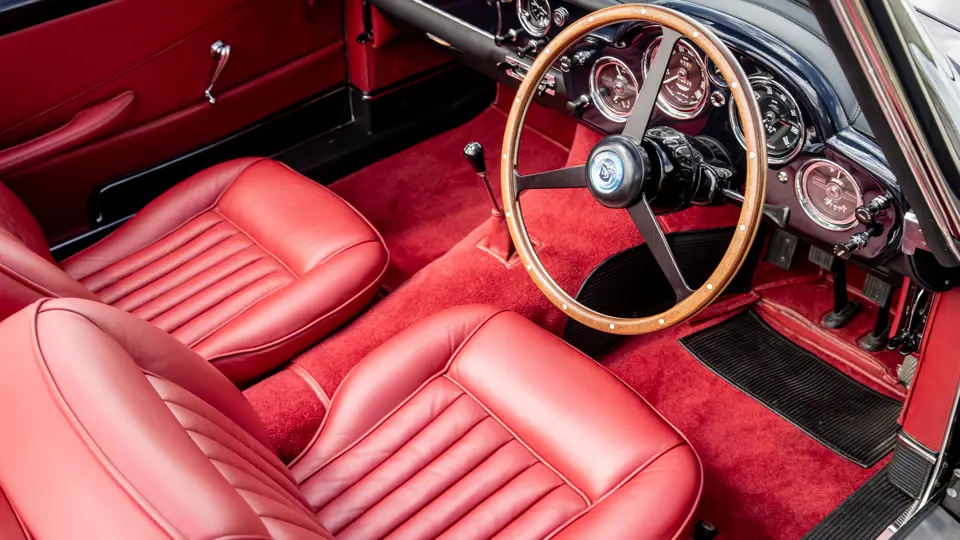 DB4/1020/R : 1962, DB4 Série 5 Vantage, overdrive, rapport de pont 3,77/1, radiateur d’huile, lunette arrière dégivrante, vitres électriques, radio Motorola, Dubonnet Rosso, cuir Fawn.