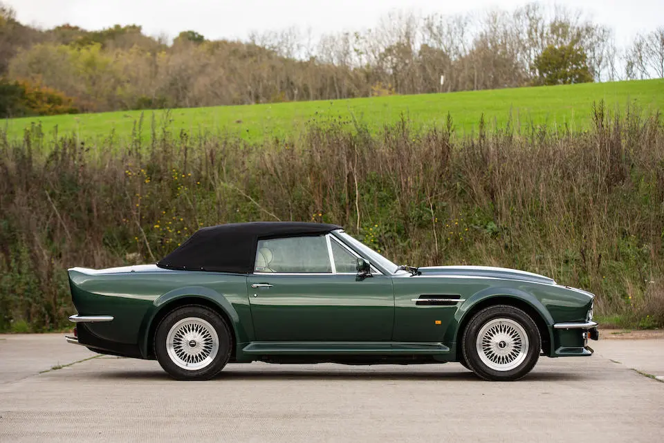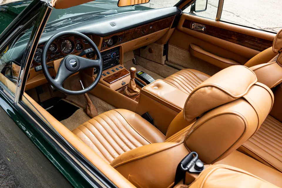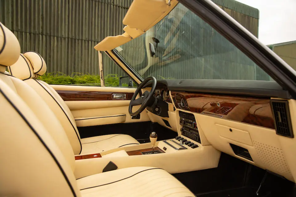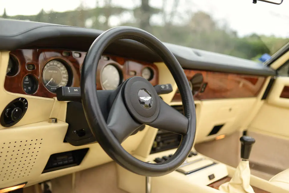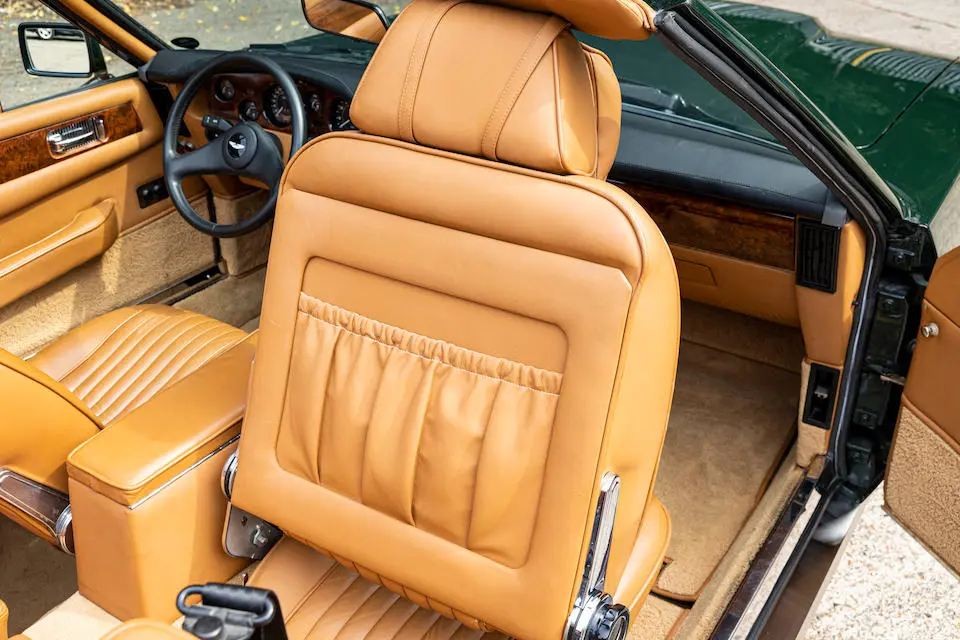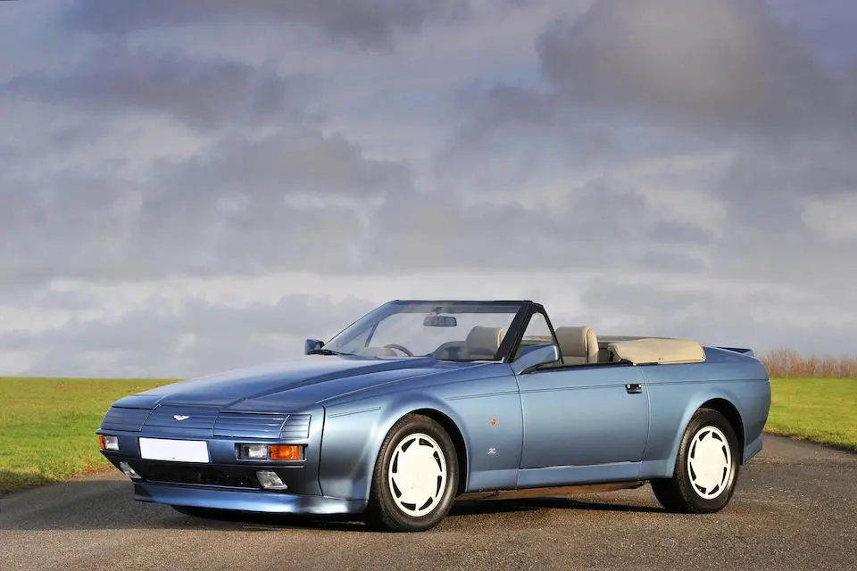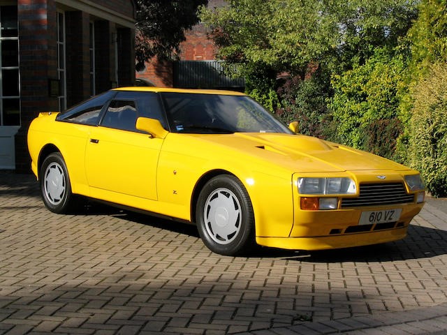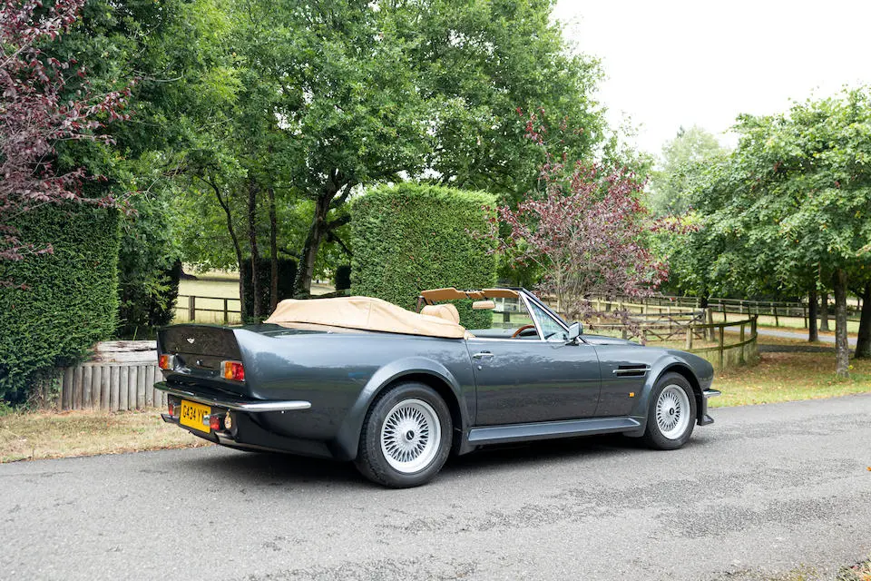 SCFCV81ZXJTL 30028 : 1989, Vantage Volante Zagato, moteur V/580/0028/X, option Vantage V580X, CAG, boîte de vitesses manuelle ZF 5 rapports, tableau de bord en bois verni foncé, bossage de capot comme les coupés, calandre dans le style des coupés, Fury Yellow, cuir noir, capote noire.