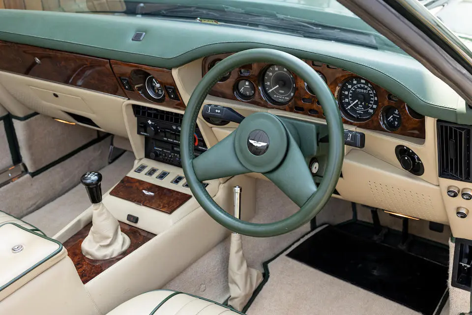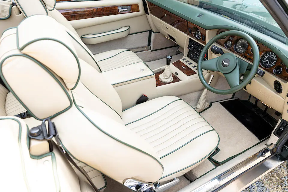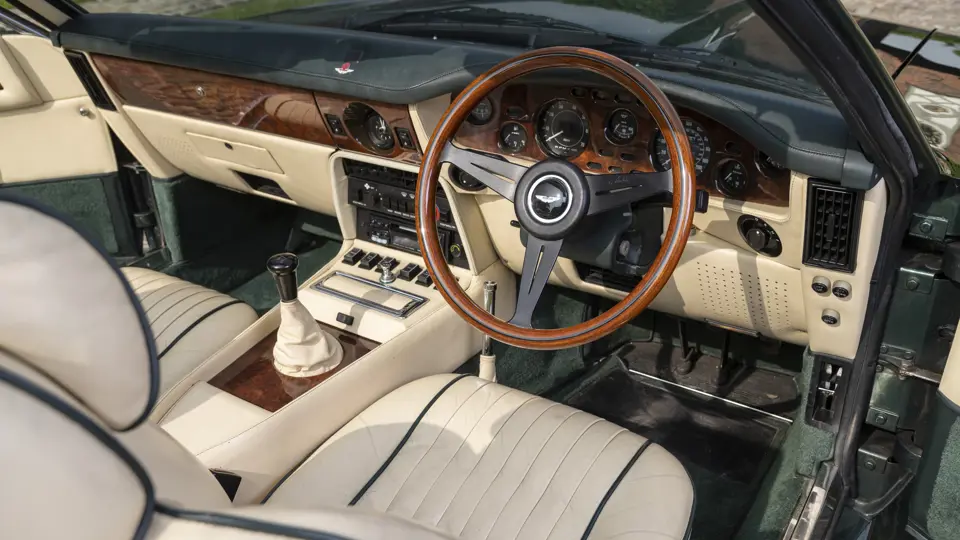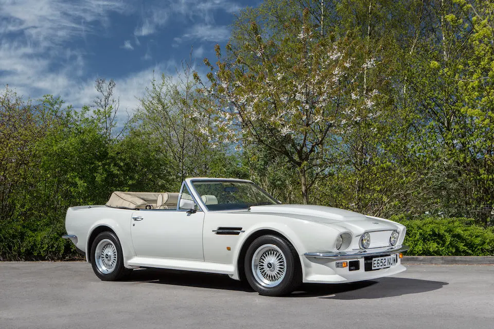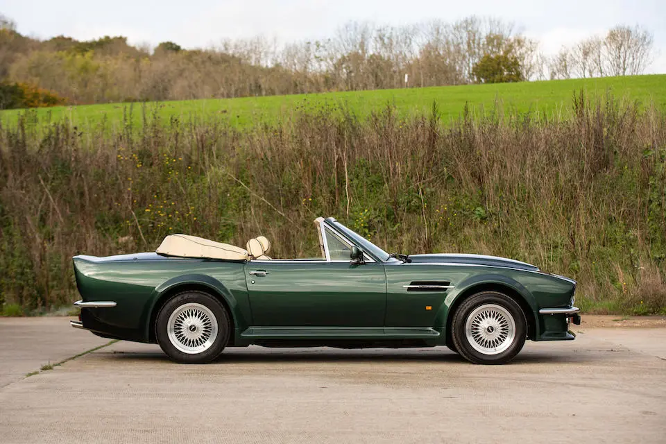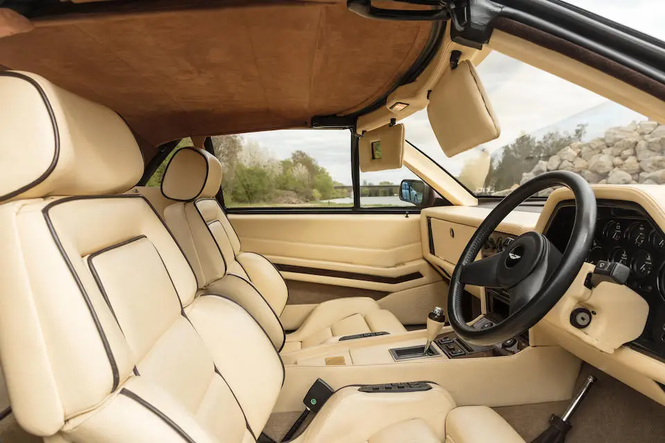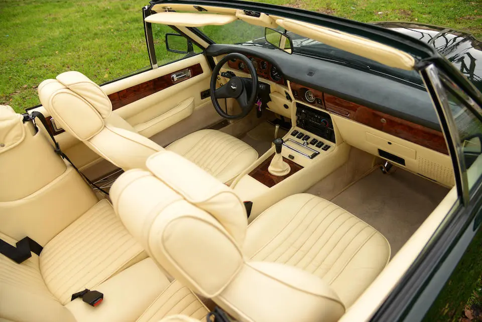 SCFCV81ZXJTL 30028 : 1989, Vantage Volante Zagato, moteur V/580/0028/X, option Vantage V580X, CAG, boîte de vitesses manuelle ZF 5 rapports, tableau de bord en bois verni foncé, bossage de capot comme les coupés, calandre dans le style des coupés, Fury Yellow, cuir noir, capote noire.