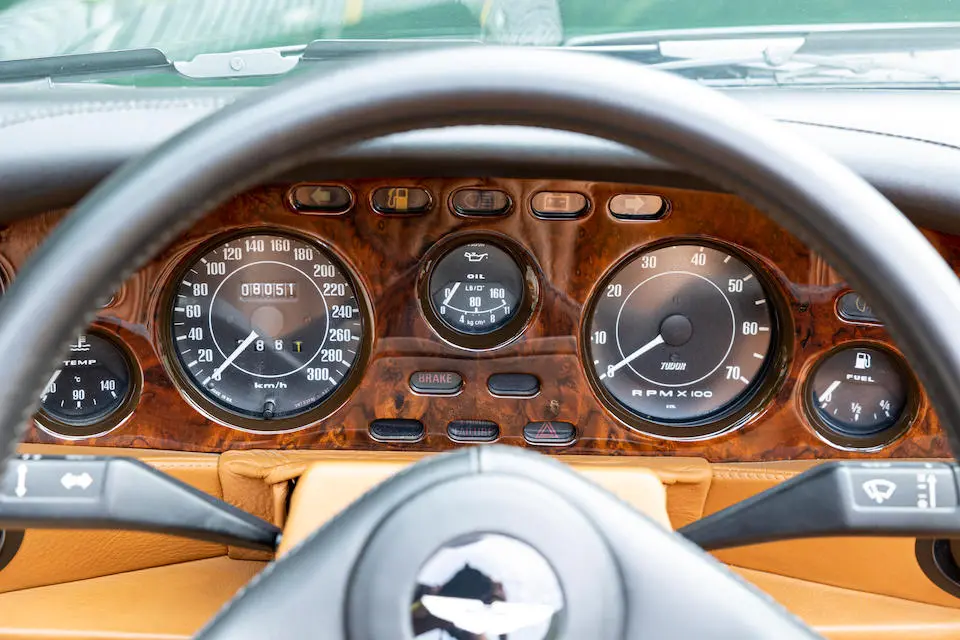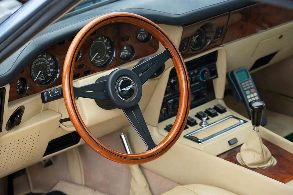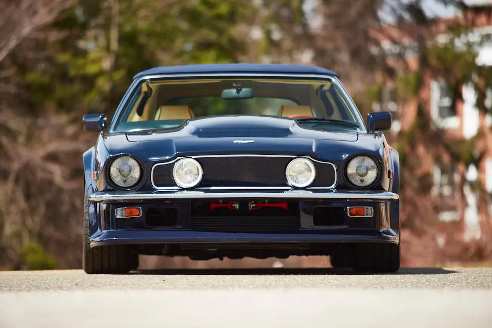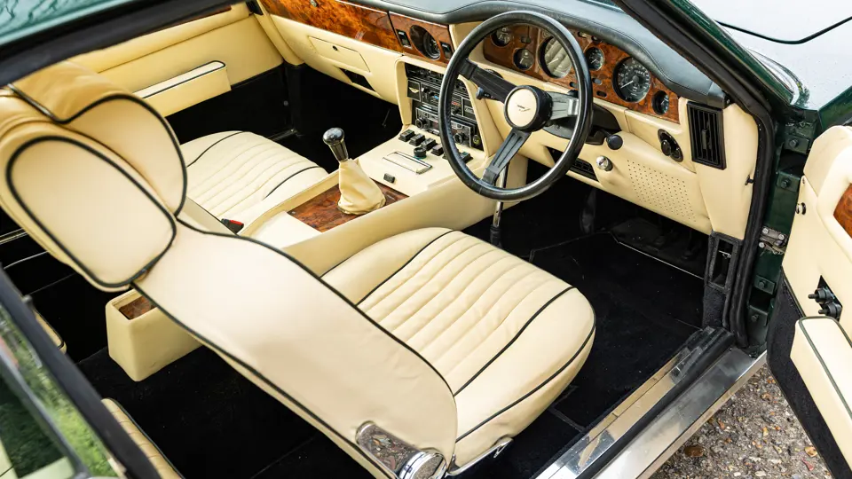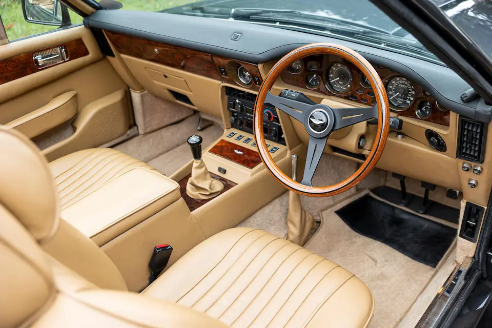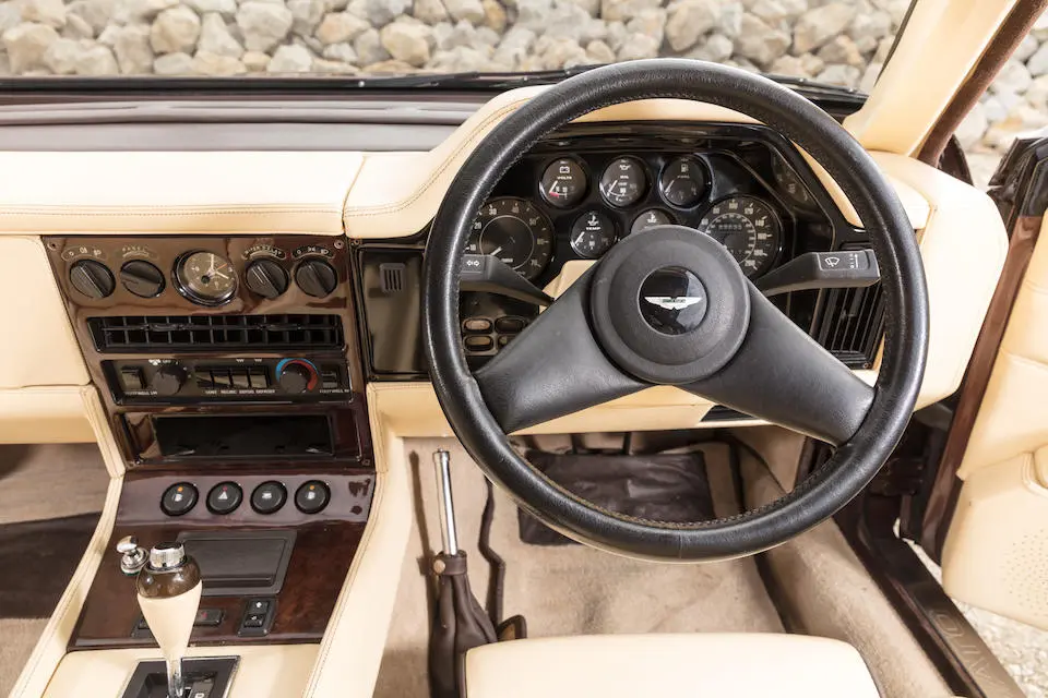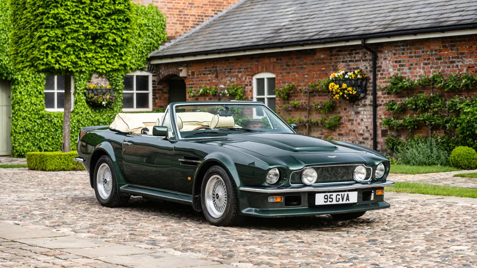 SCFCV81ZXJTL 30028 : 1989, Vantage Volante Zagato, moteur V/580/0028/X, option Vantage V580X, CAG, boîte de vitesses manuelle ZF 5 rapports, tableau de bord en bois verni foncé, bossage de capot comme les coupés, calandre dans le style des coupés, Fury Yellow, cuir noir, capote noire.