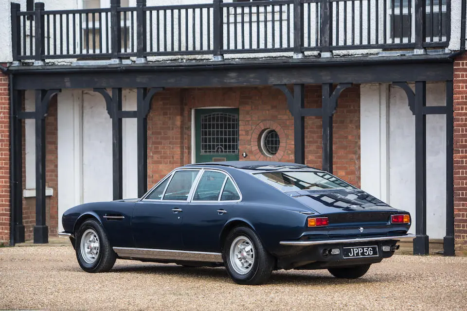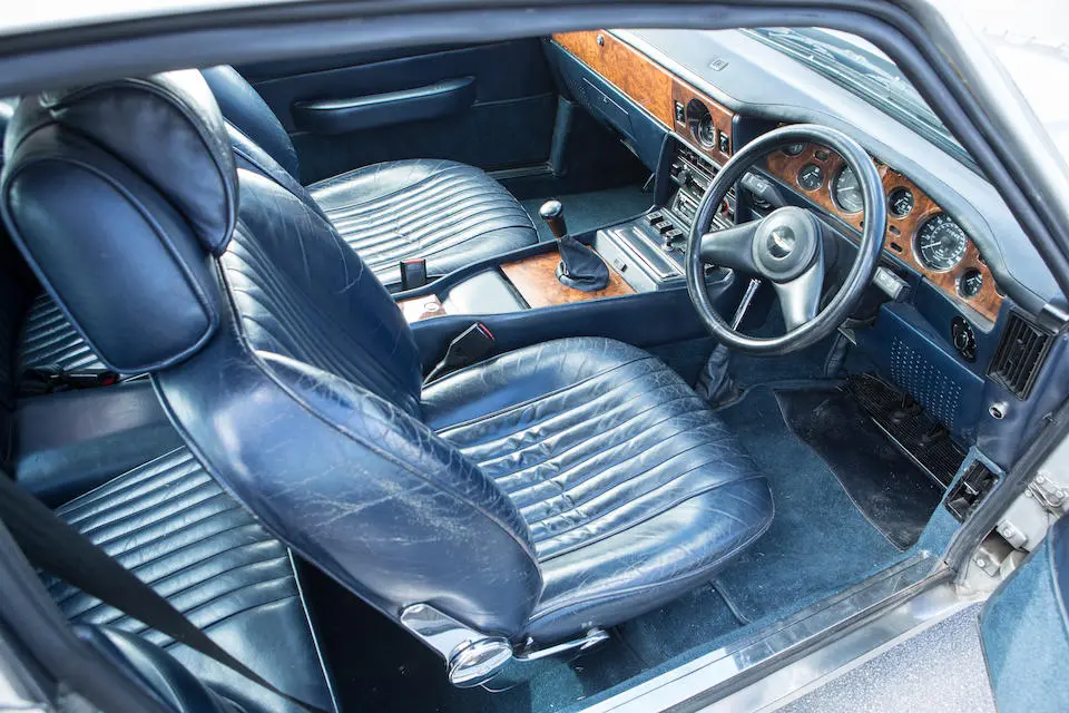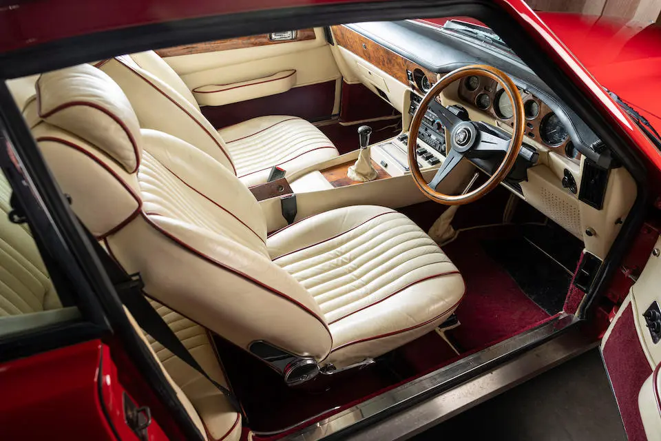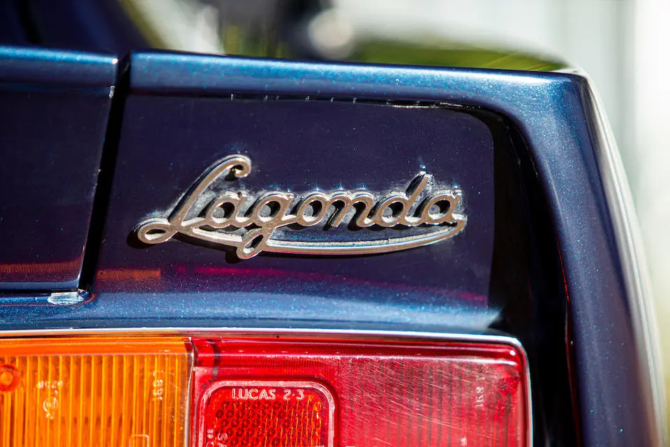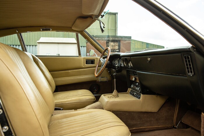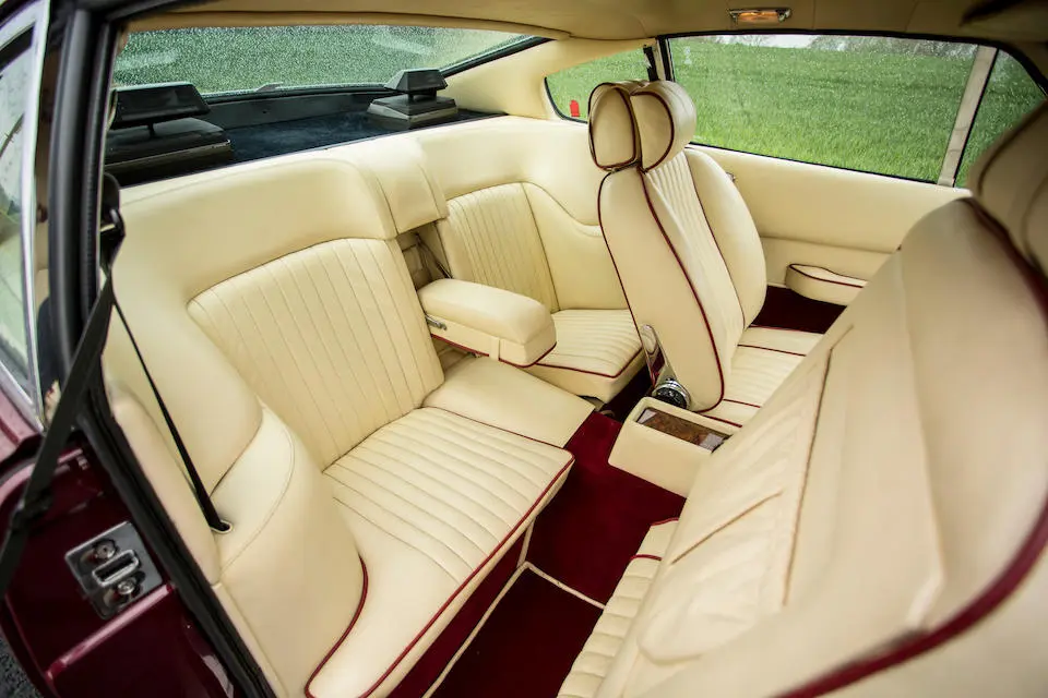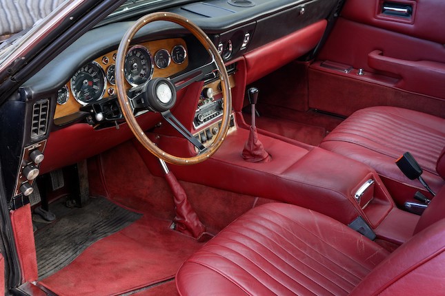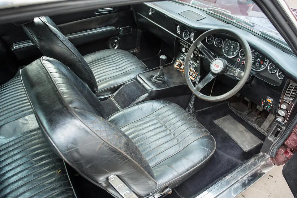 MP/230/1 : 1969, Lagonda, prototype de la série, sur base DBS, moteur V8 expérimental 5 litres injection, boîte de vitesses automatique, jantes à rayons, Roman Purple, velours Crimson.