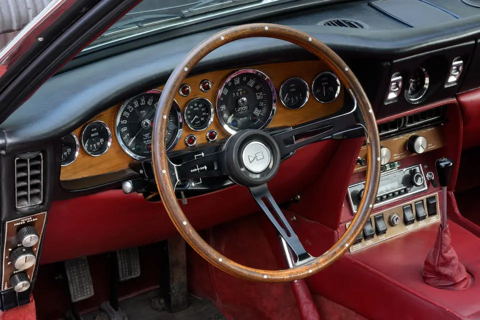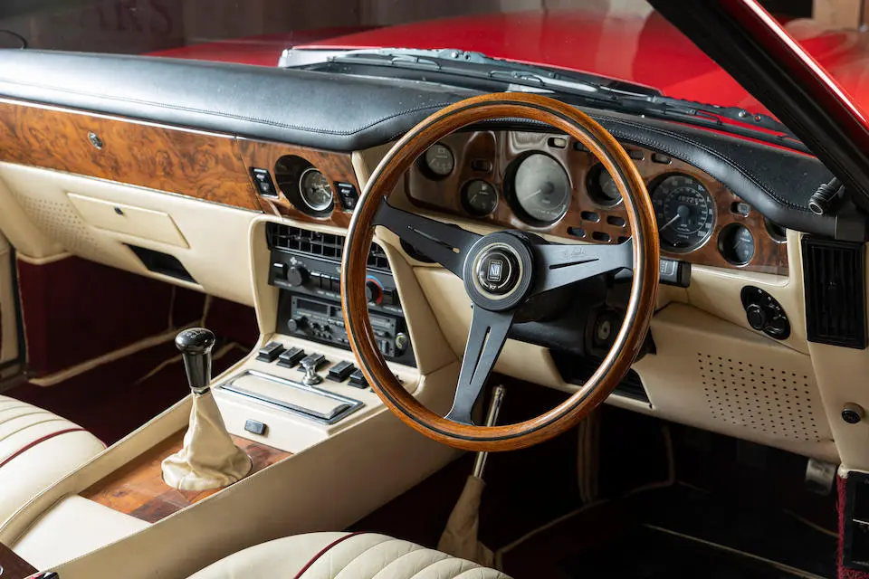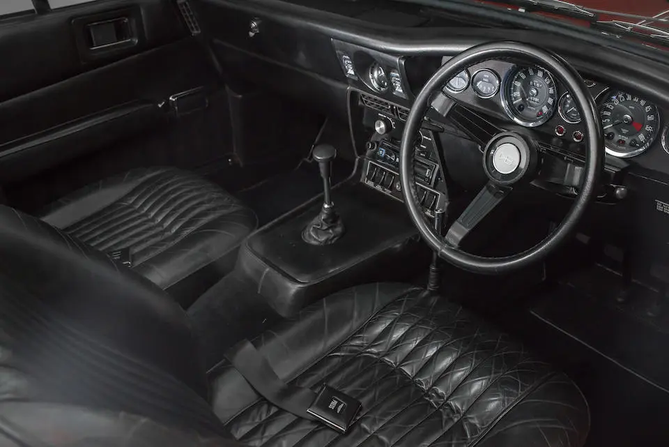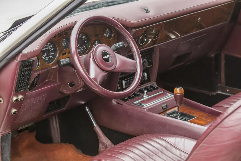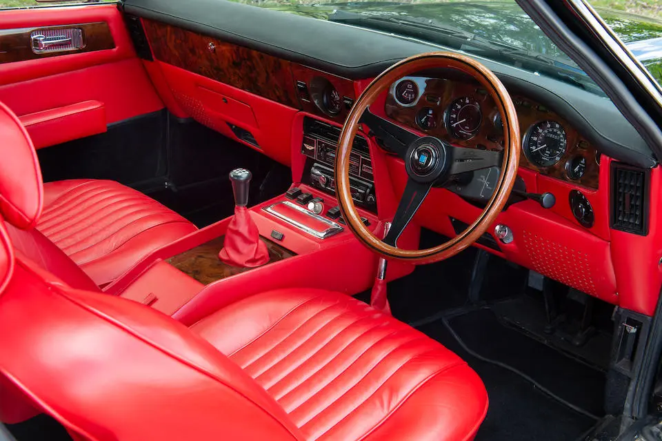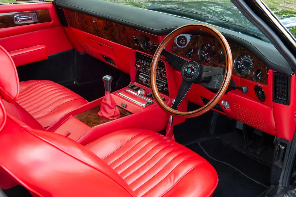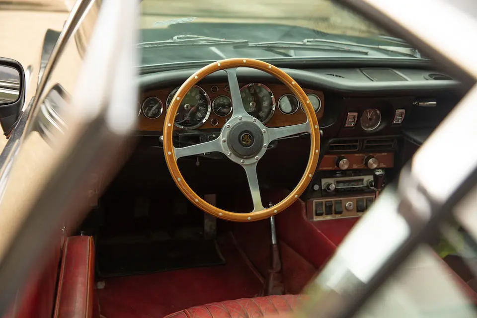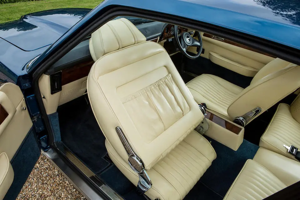 MP/230/1 : 1969, Lagonda, prototype de la série, sur base DBS, moteur V8 expérimental 5 litres injection, boîte de vitesses automatique, jantes à rayons, Roman Purple, velours Crimson.