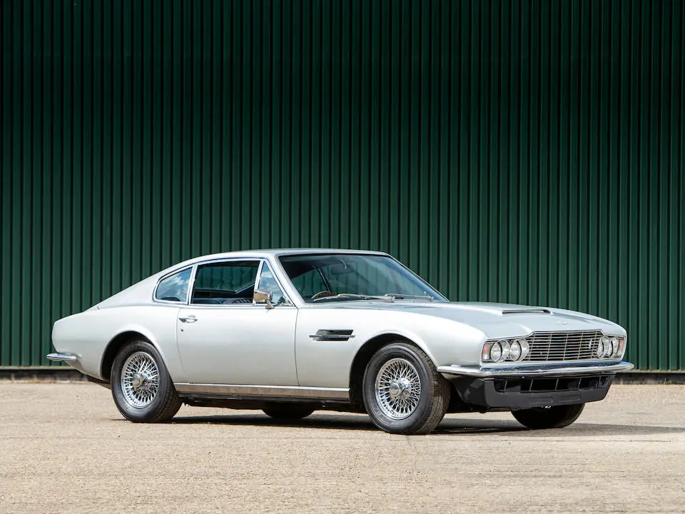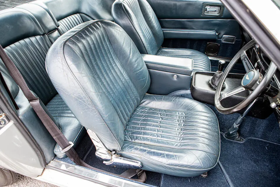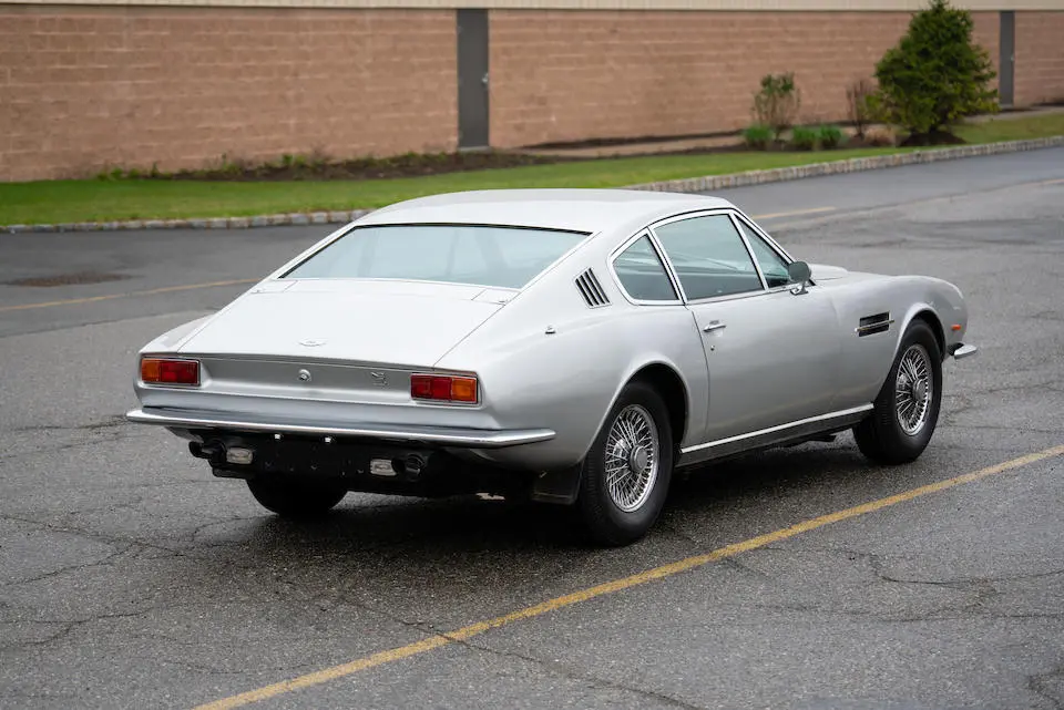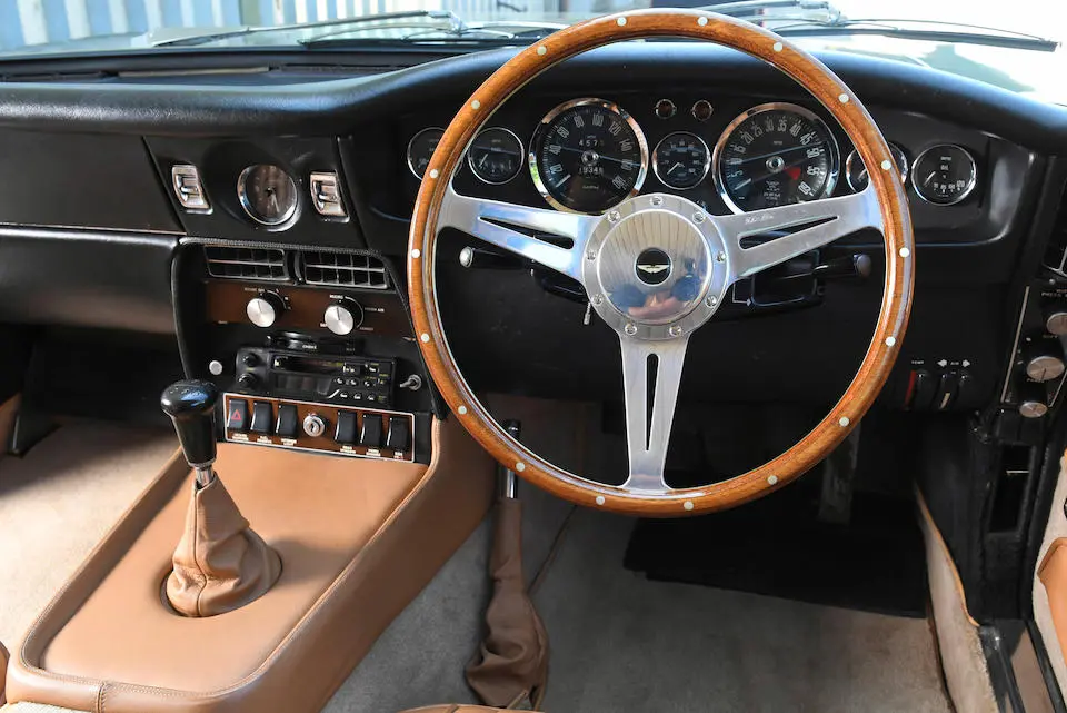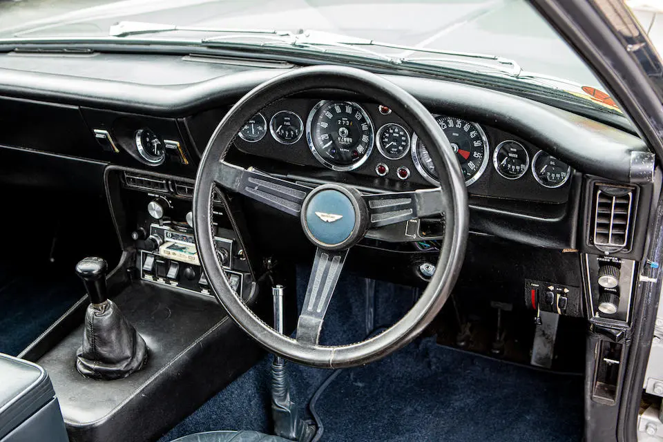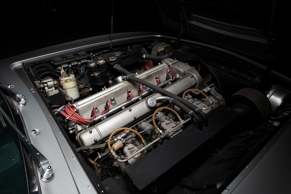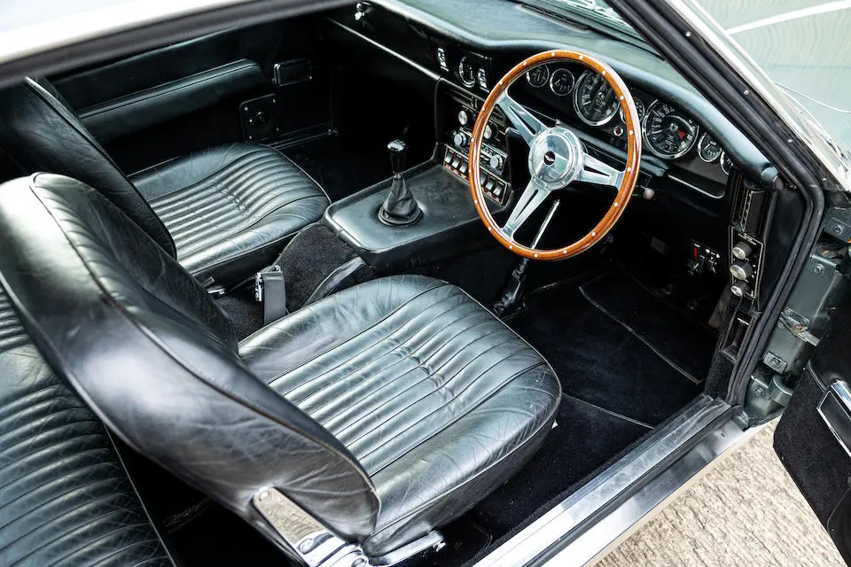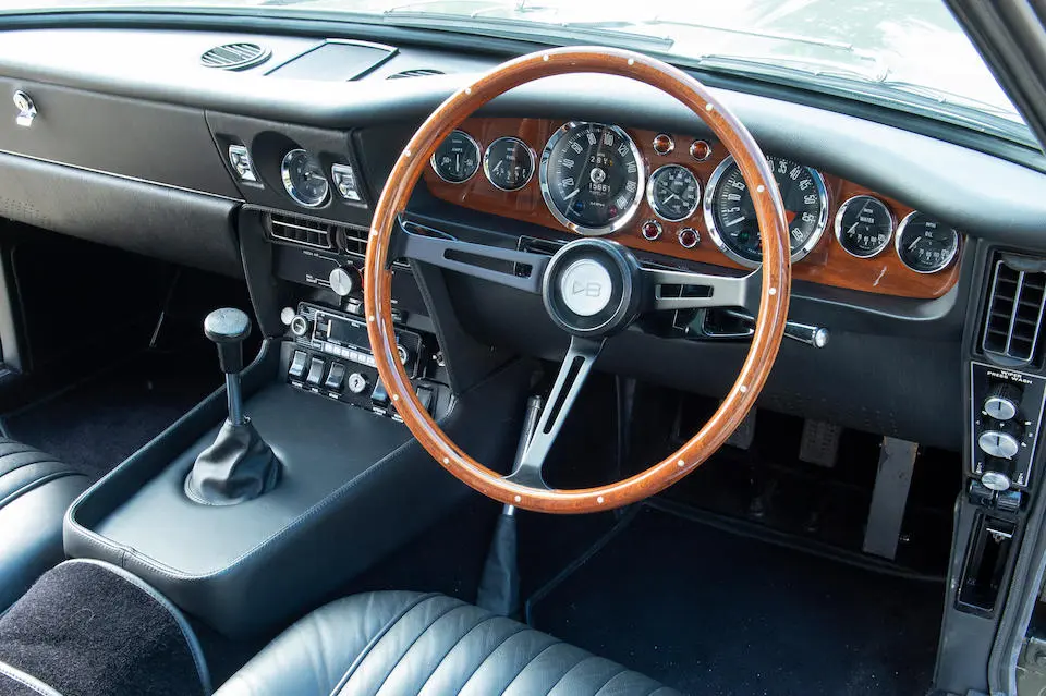 DBS/5377/L : 1969, DBS Vantage, 1/70, CAG, boîte de vitesses manuelle, direction assistée, avertisseurs sonores Fiamm, antibrouillards Marchal, 2 appuie-têtes, rétroviseurs d’ailes Walpres, ceintures de sécurité arrières, radio Motorola, moteur 400/4221/SVC, Silver Birch, cuir noir.