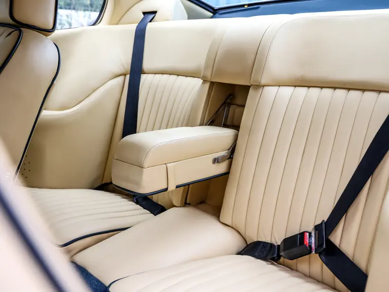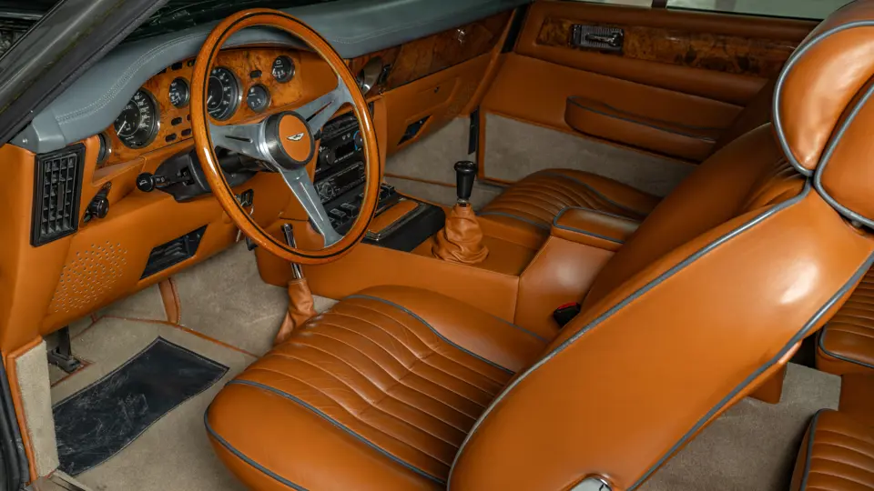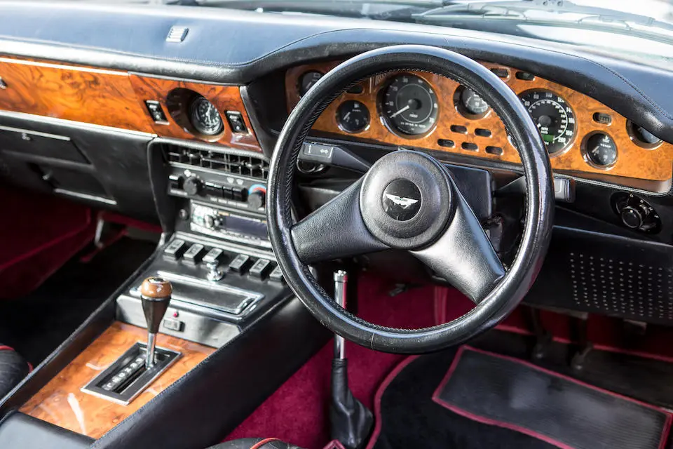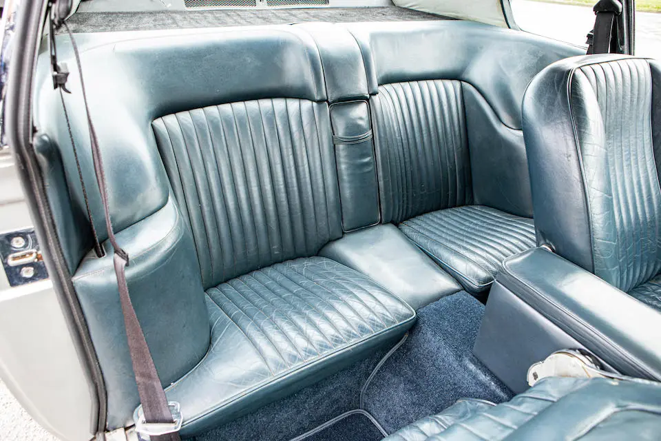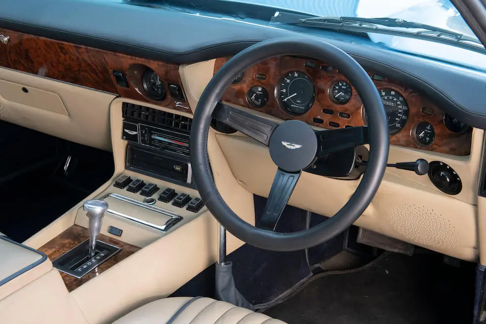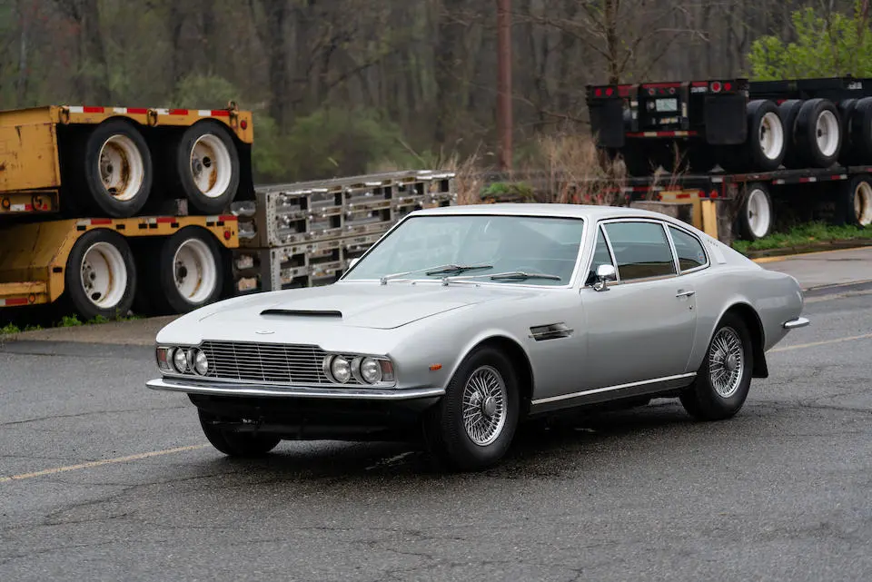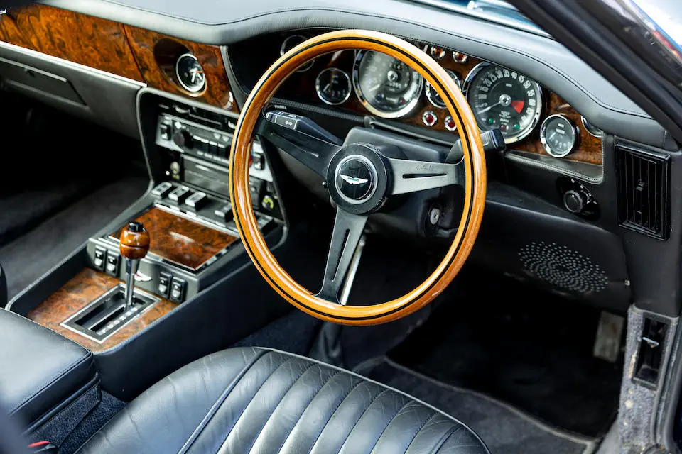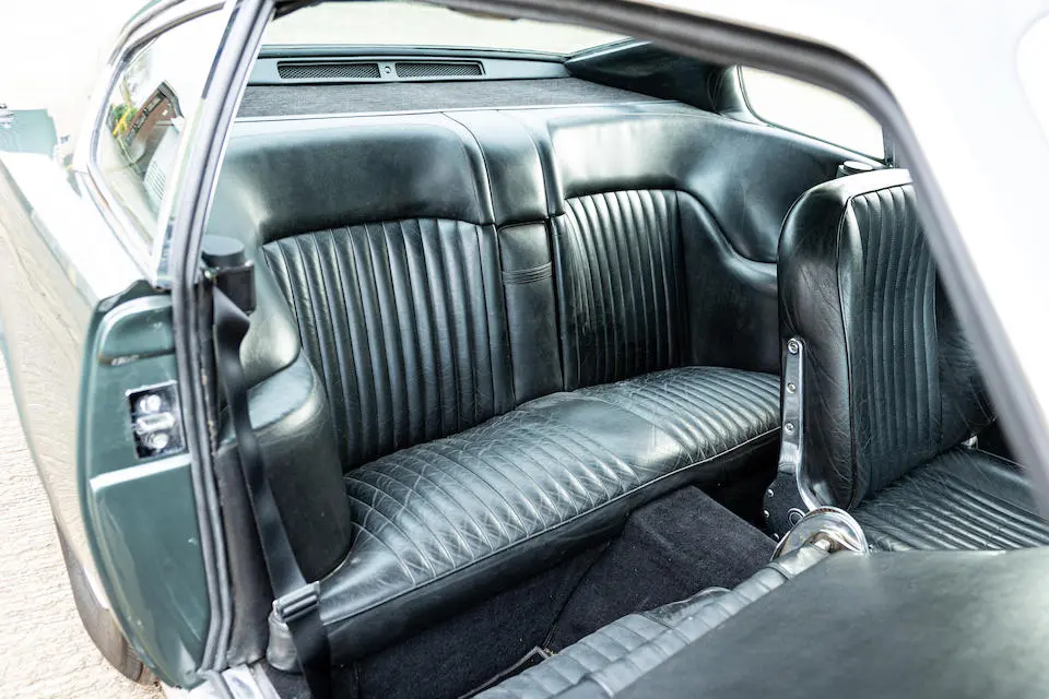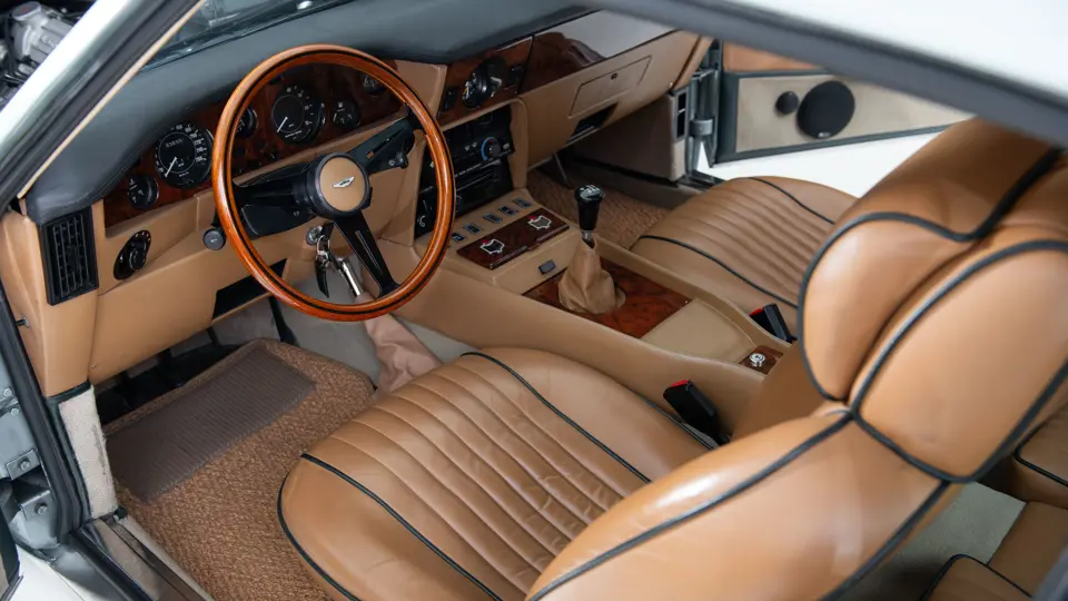 DBS/5377/L : 1969, DBS Vantage, 1/70, CAG, boîte de vitesses manuelle, direction assistée, avertisseurs sonores Fiamm, antibrouillards Marchal, 2 appuie-têtes, rétroviseurs d’ailes Walpres, ceintures de sécurité arrières, radio Motorola, moteur 400/4221/SVC, Silver Birch, cuir noir.