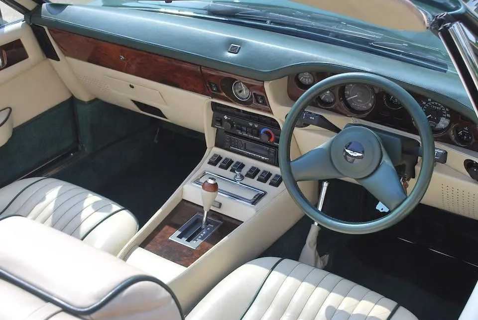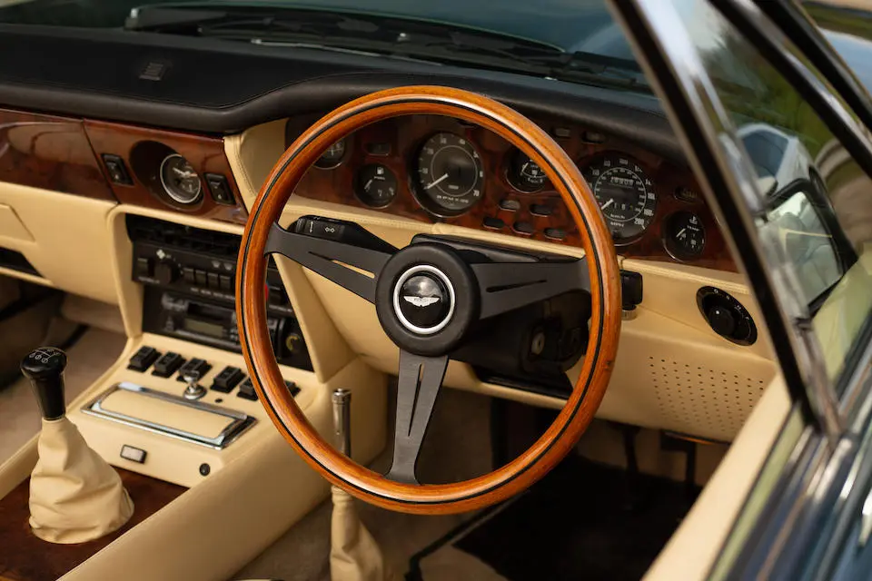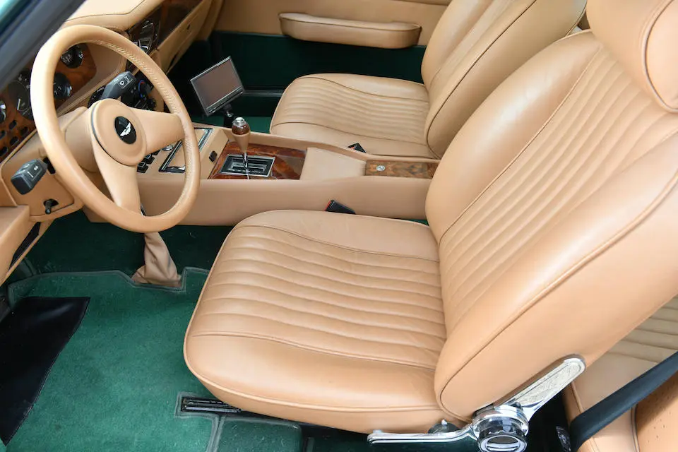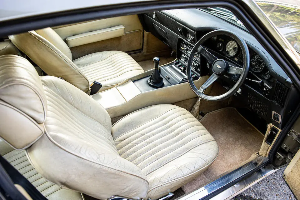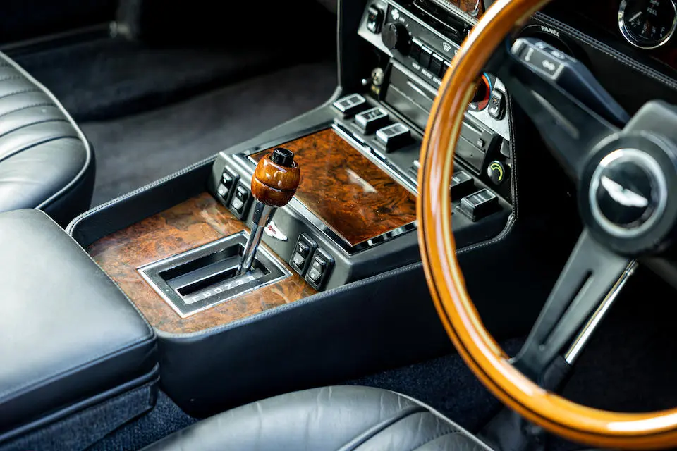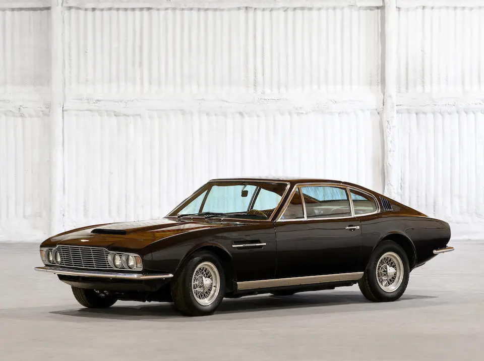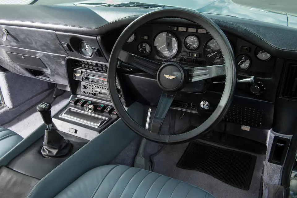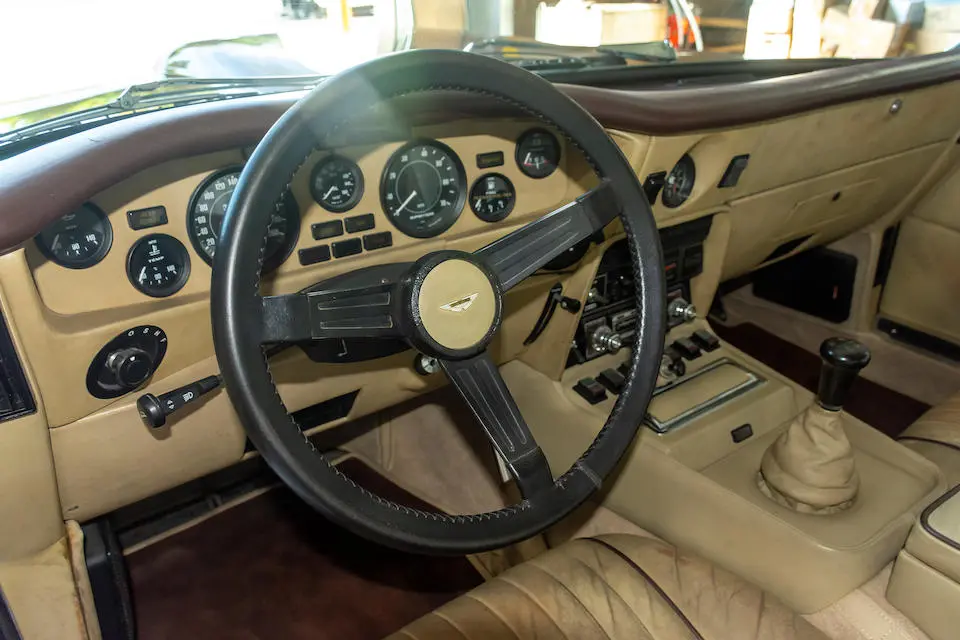 DBS/5377/L : 1969, DBS Vantage, 1/70, CAG, boîte de vitesses manuelle, direction assistée, avertisseurs sonores Fiamm, antibrouillards Marchal, 2 appuie-têtes, rétroviseurs d’ailes Walpres, ceintures de sécurité arrières, radio Motorola, moteur 400/4221/SVC, Silver Birch, cuir noir.