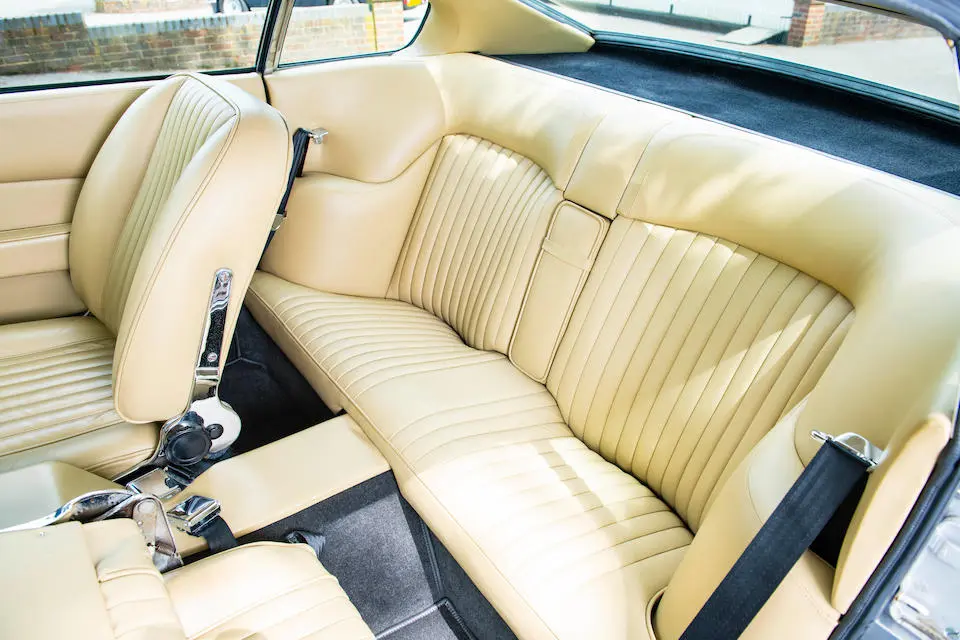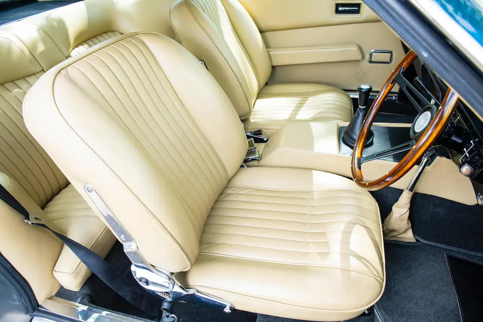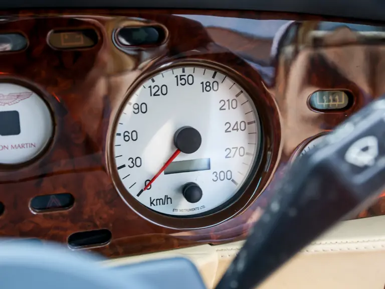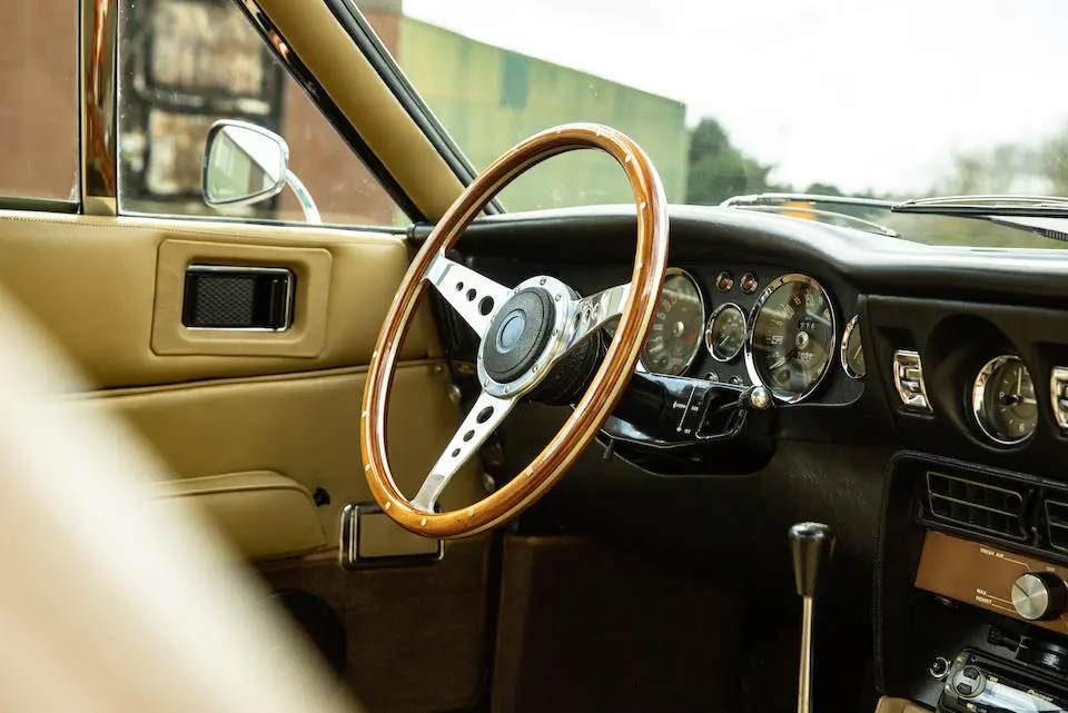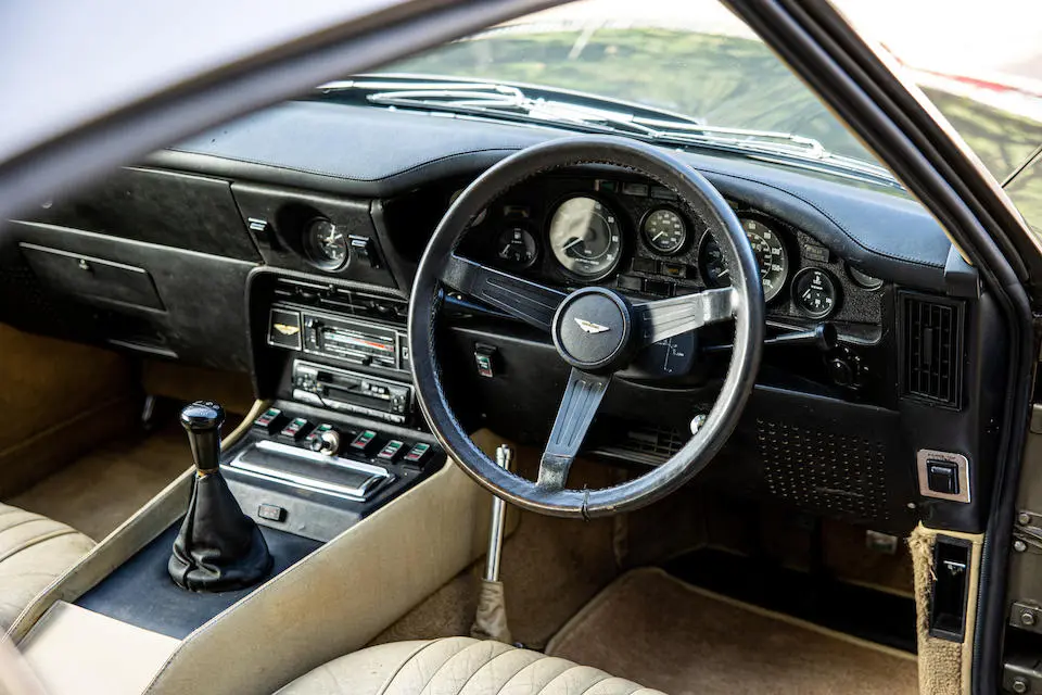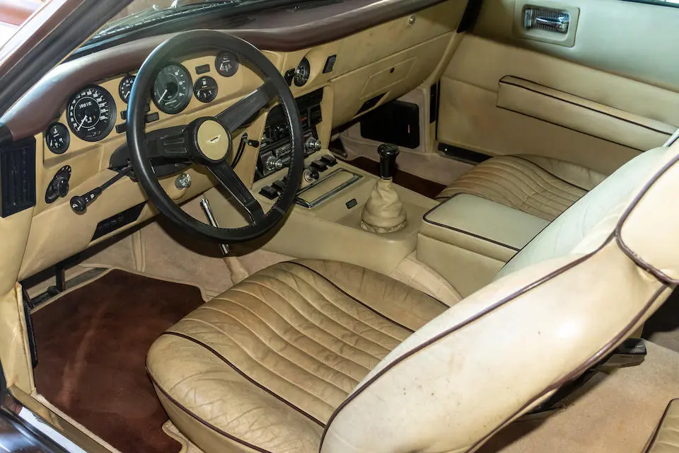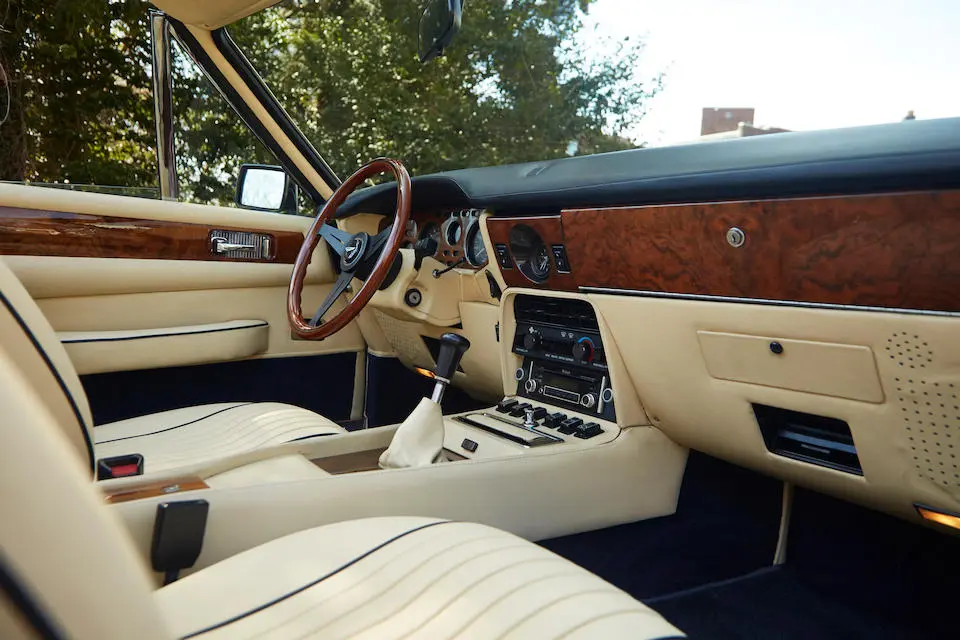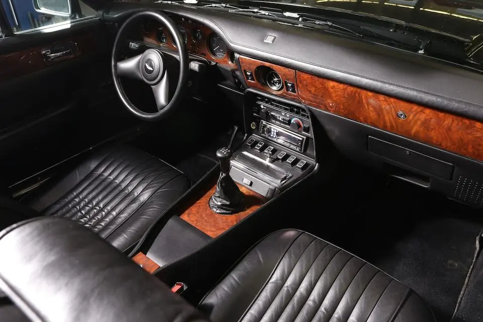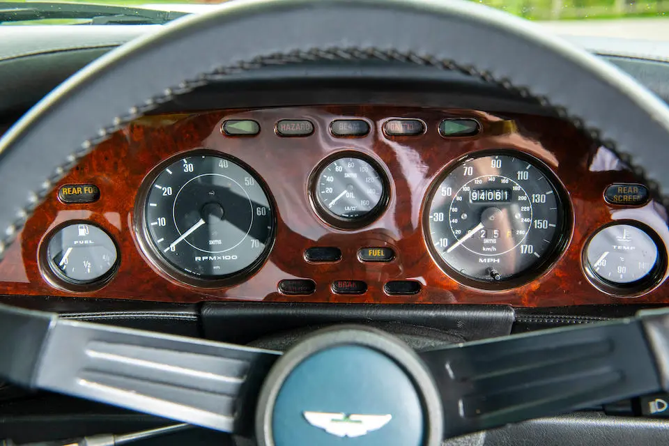DBS/5377/L : 1969, DBS Vantage, 1/70, CAG, boîte de vitesses manuelle, direction assistée, avertisseurs sonores Fiamm, antibrouillards Marchal, 2 appuie-têtes, rétroviseurs d’ailes Walpres, ceintures de sécurité arrières, radio Motorola, moteur 400/4221/SVC, Silver Birch, cuir noir.