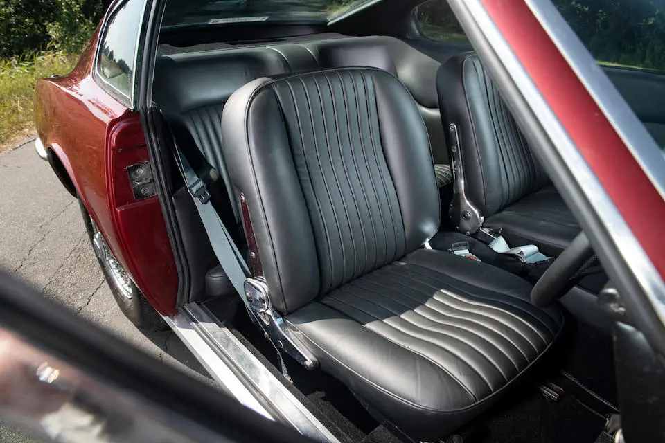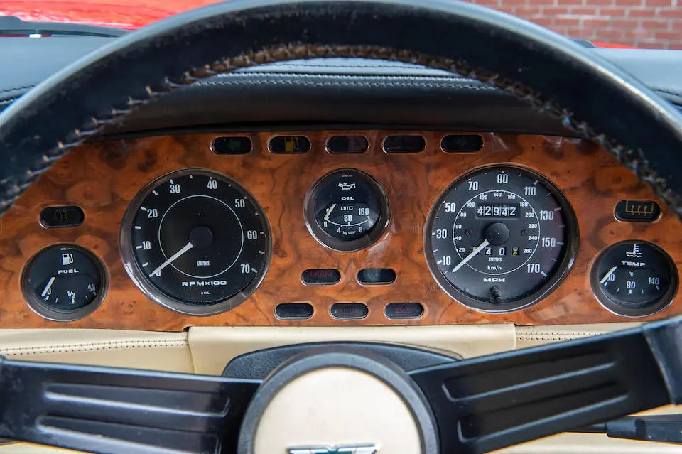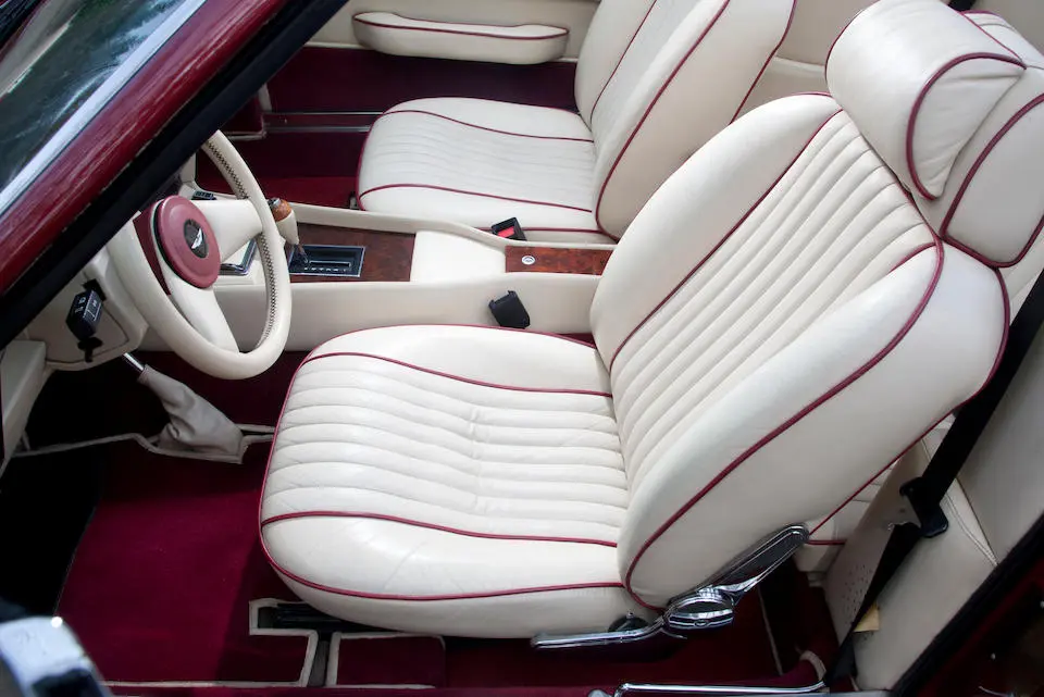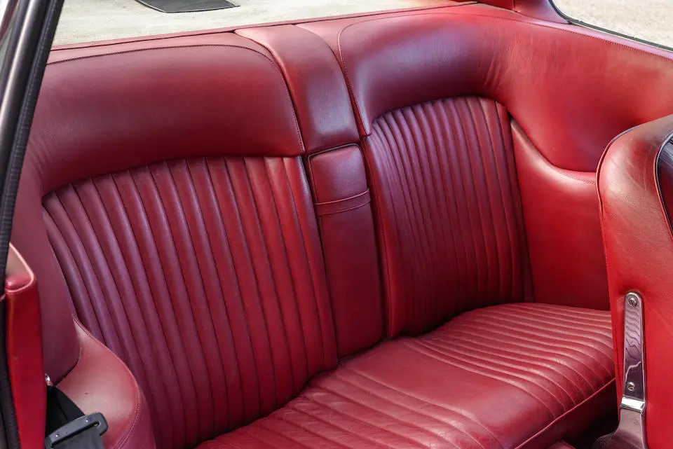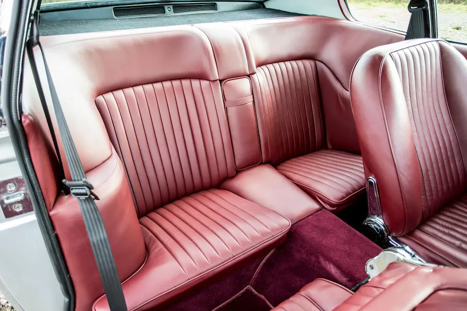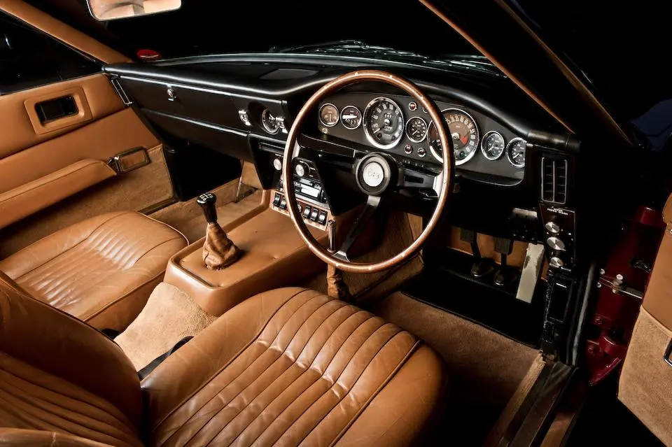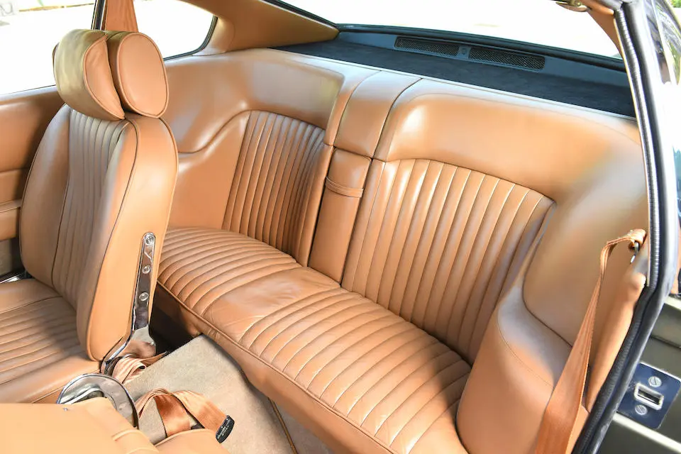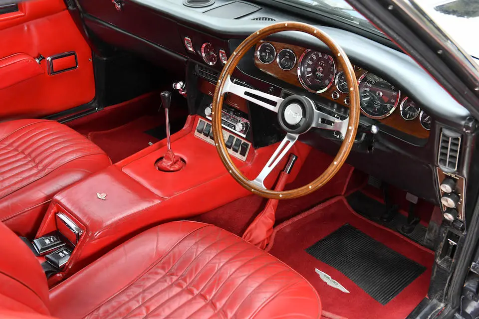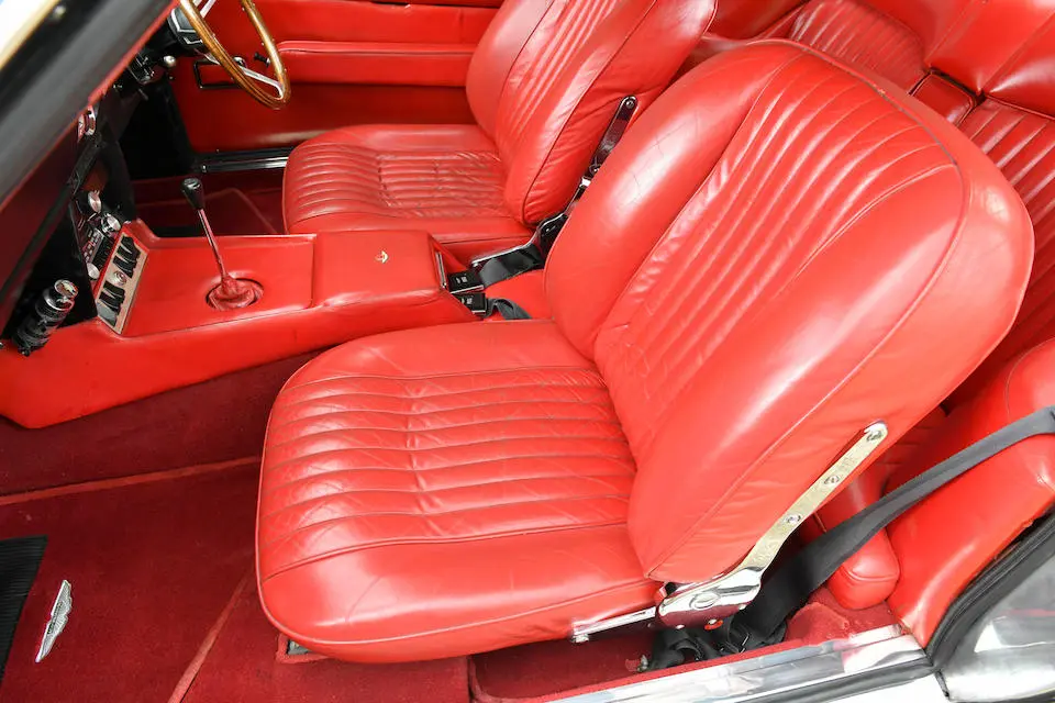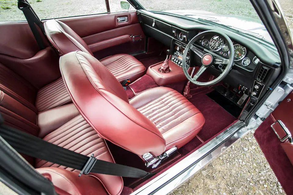 DBS 5002/R : 1967, 2e prototype de la DBS, moteur 400/3269/SVC (Vantage), direction assistée, radio Motorola, ancrages de ceintures de sécurité, Dubonnet Rosso, cuir naturel.