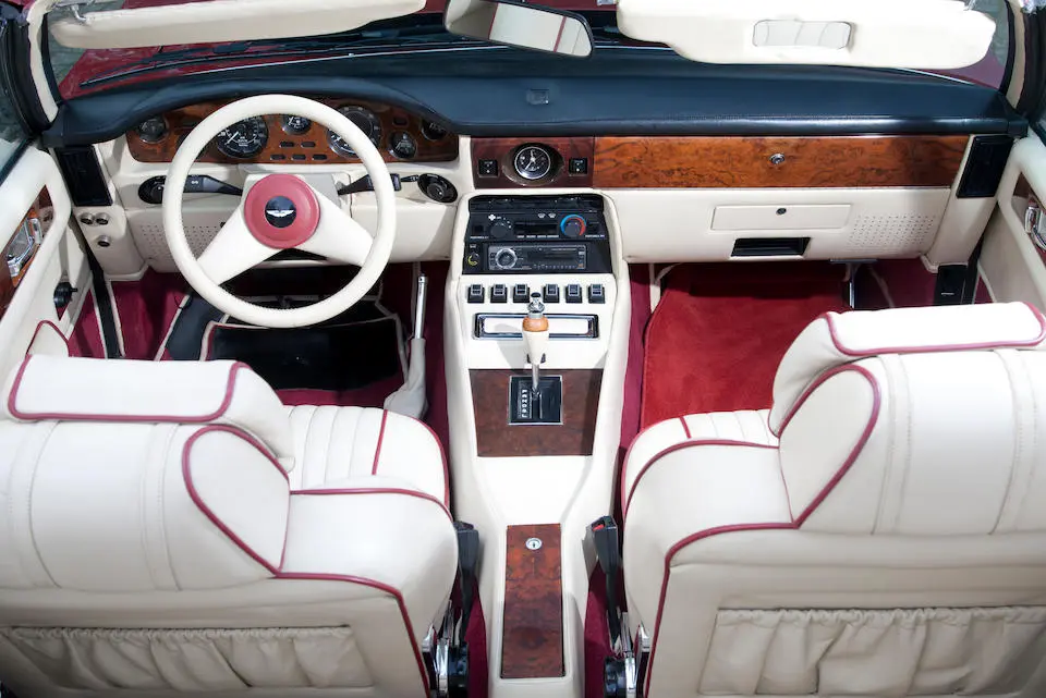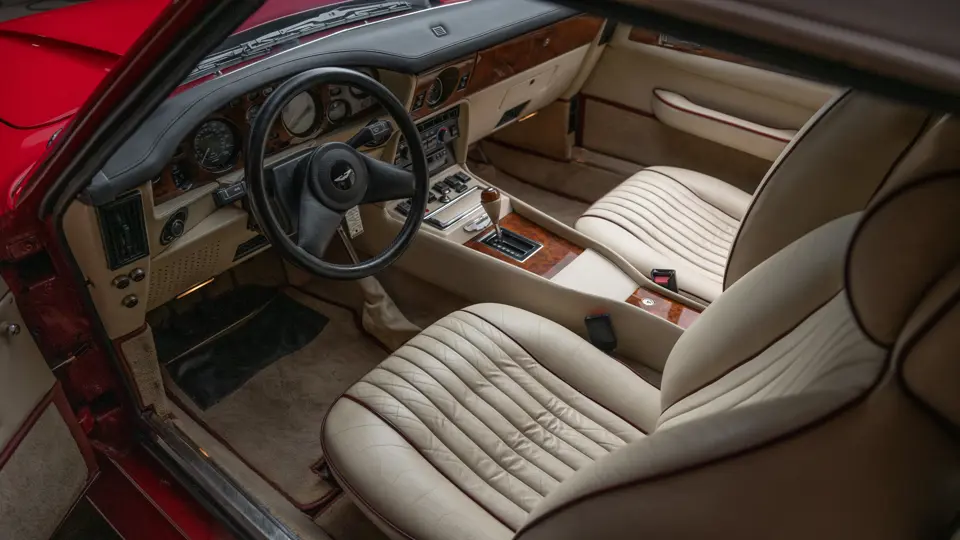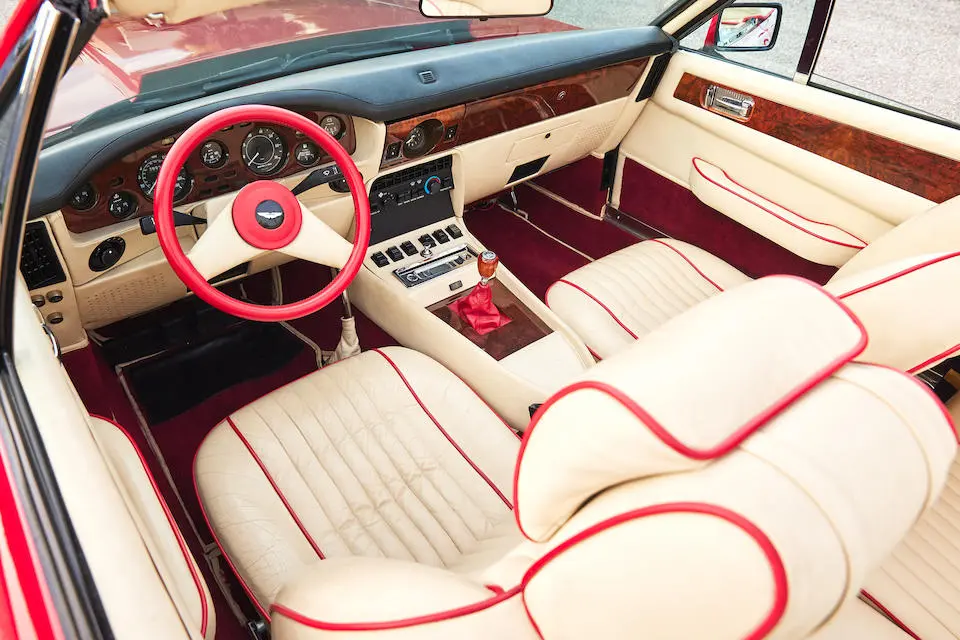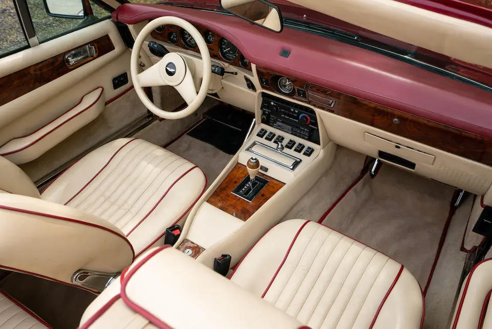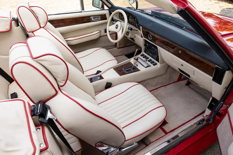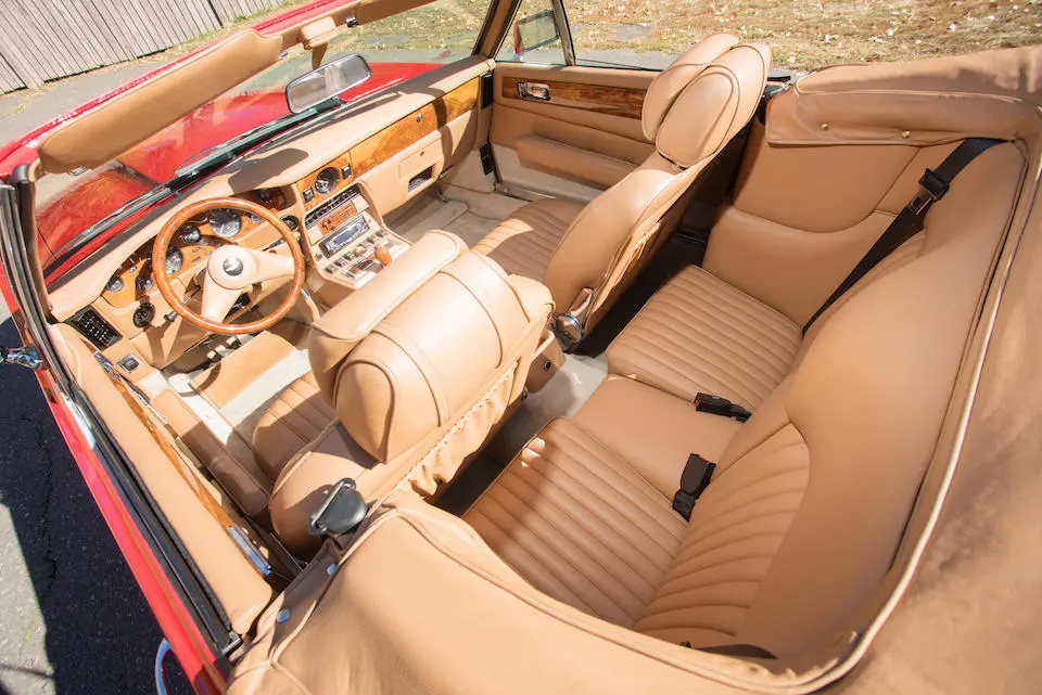 SCFCV81Z0KTL 30038 : 1989, V8 Zagato Volante, CAG, Boîte de vitesses automatique, Suffolk Red, capote beige à commande électrique, cuir naturel, kit suspensions Harvey Bailey, échappement sport.