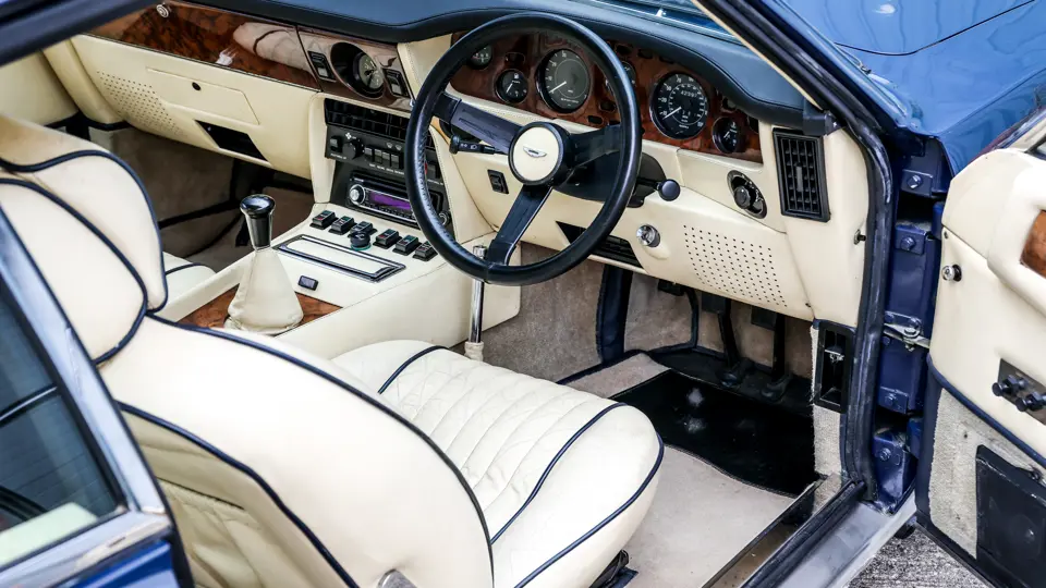 SCFV8ZGTR20039 : 1986, V8 Vantage Zagato, CAD, boîte de vitesses manuelle, Valiant Blue, cuir crème, volant et tableau de bord cuir bleu foncé, moquette Wilton bleu foncé, moteur V/580/0039/X.