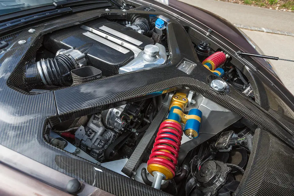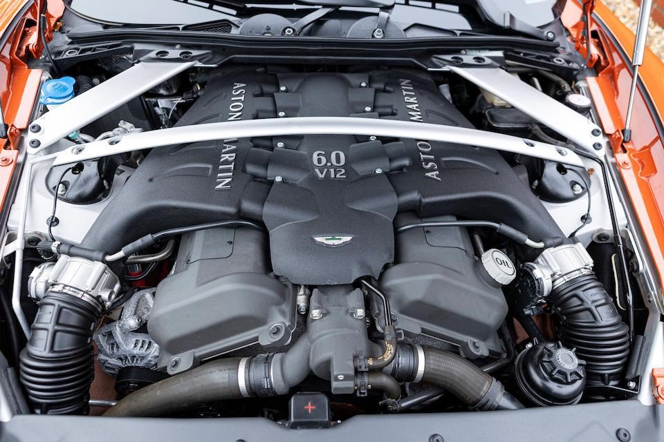 12 cylindres en V ouvert à 60° entièrement en alliage léger repris de la DB7 Vantage et revu par Cosworth Racing et positionné le plus en arrière possible dans le châssis pour avoir une bonne répartition des masses.