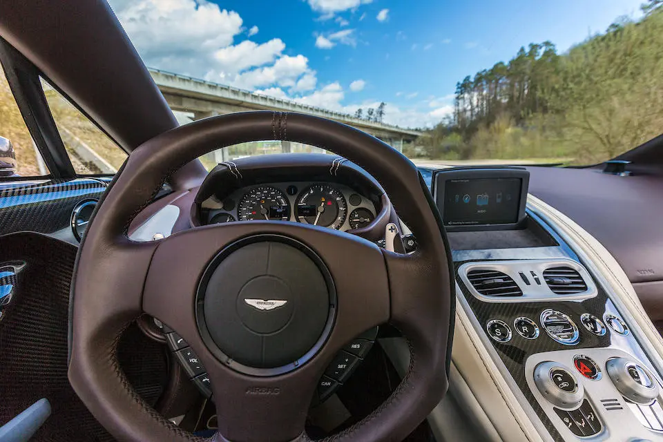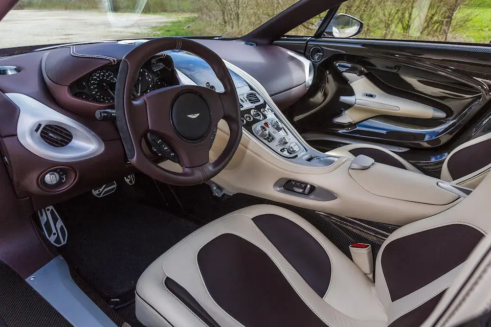 03/2009 : Salon de Genève (CH) : Présentation officielle de la One 77. La version définitive apparait au Concours d’Elegance de la Villa d’Este, Cernobbio (ITA). Production limitée à 77 exemplaires au prix de GB£ 1.150.000, avec précommande (acompte GB£ 200.000).