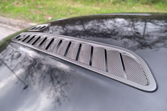 Carrosserie dérivée de la GT3 sans les élargisseurs d’aile ni appendices aérodynamiques. Habitacle modifié avec console centrale en carbone; leviers de clignotants, dessus des buses d’aération et dos du rétroviseur garnis de cuir; compteurs différents et écran multimodal incluant Apple Car Play.