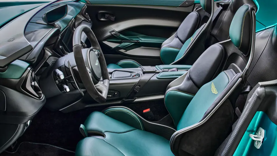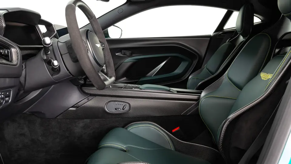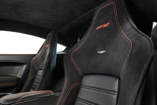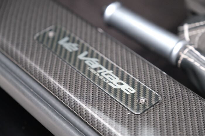 Châssis revu pour un usage sur circuit et carrosserie en fibre de carbone permettant de limiter le poids à 1519 kg (usine) soit 100 de moins que la Vantage S malgré le montage d’une climatisation, d’un équipement audio de 160 Watts et su système d’infotainment Ami III. Sièges baquet fixes à coque en fibre de carbone et garnitures alcantara.