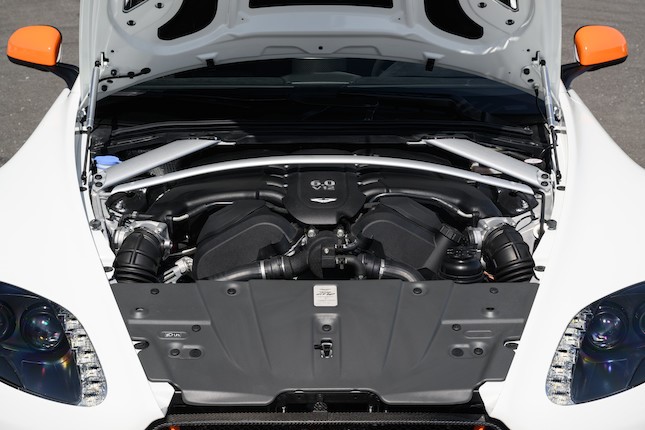 02/2015 : Salon de Genève (CH) : Présentation de la Vantage V12 dérivée des GT3 avec ailes ourlées en fibre de carbone, voies élargies, pneus Michelin Pilot Super Sport ; diffuseur avant agrandi et gros aileron en carbone, capot, portes en carbone, toit en carbone disponible en option, lunette arrière et vitres de custode arrière en polycarbonate sur demande permettant de gagner 100 kg sur la Vantage S (1565 kg -usine-).