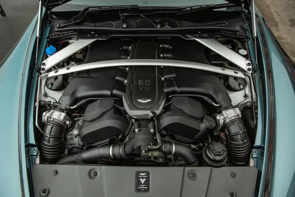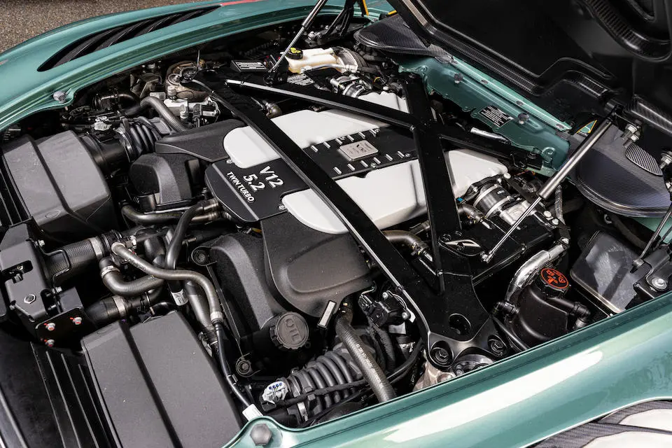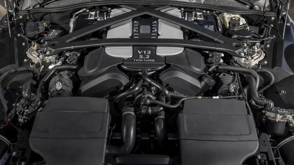 Moteur V12 5,2 litres suralimenté par 2 turbocompresseurs de la DBS 770 développant 715 chevaux et 753 Nm.