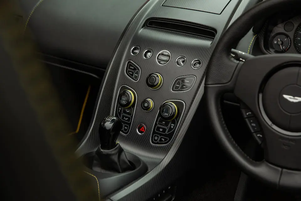 La finition fait appel aux matériaux les plus raffinés de la production britannique comme la fibre de carbone et les métaux rares pour la fonderie de certaines pièces. La voiture est disponible en 5 coloris repris de la DB4 GT/Z. Les sièges, garnitures intérieures et partie arrière sont garnis de cuir façon tapissier posé manuellement.
