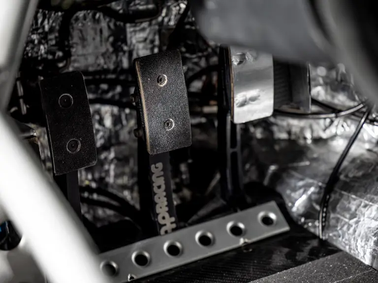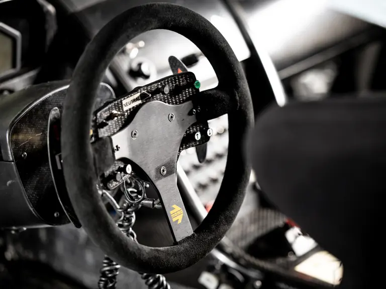Transmission par boîte de vitesses séquentielle à 6 rapports Xtrac et palettes au volant. Différentiel autobloquant et embrayage course. Suspensions réglables avec amortisseurs Koni.
