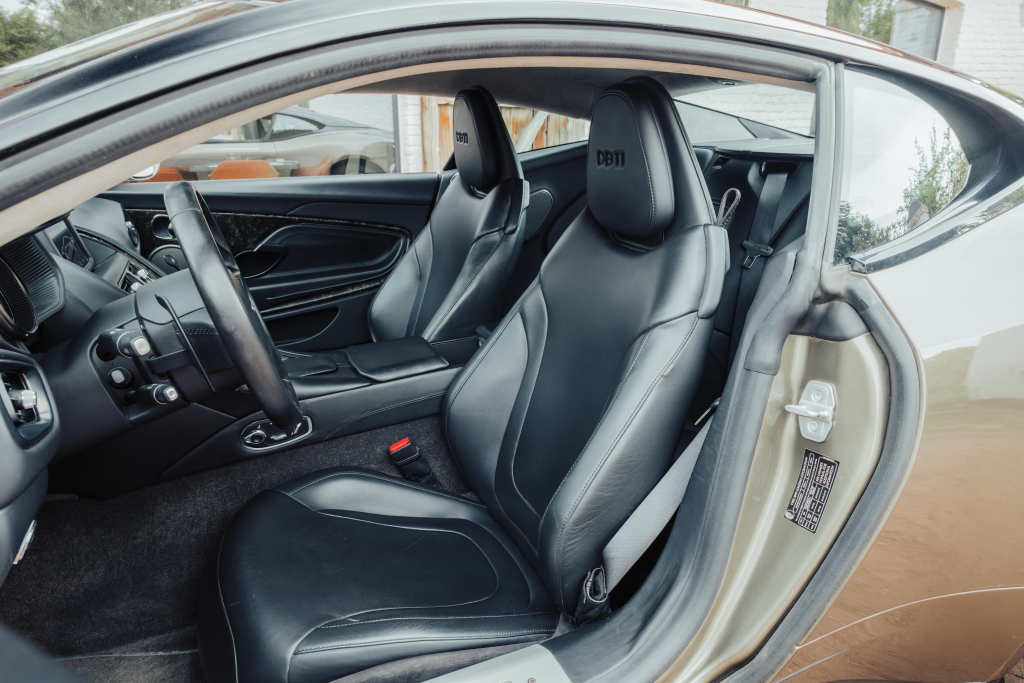 La DB11 est disponible en 54 coloris (3 pour les arches de toit) avec choix pour les couleurs des jantes, des étriers et du toit. Pour l’habitacle le client a le choix entre 32 couleurs de cuir et de surpiqûres, des matériaux de la console et des teintes d’alcantara (volant et ciel de toit). Le Département Q de l’usine permet une finition à la demande.