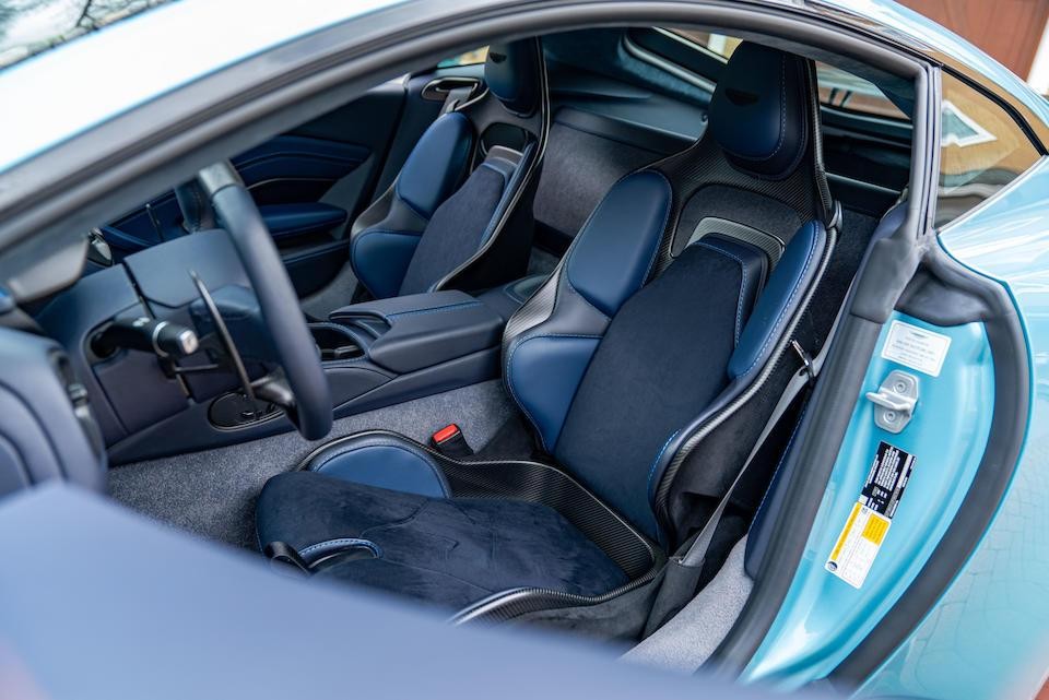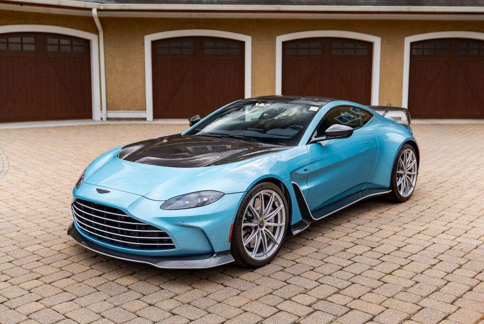 SCFSMGAV2PGN07646 : 2023, V12 Vantage Coupé, Appearance Package, double sortie d’échappement centrale, bagages (7 pièces), Lightweight Package, jantes allégées, capot carbone, Premium Audio, Q Caribbean Blue Pearl 2, alcantara Dark Knight à inserts Aurora Blue, ciel de toit et tapis de sol Blue Haze, garnitures en carbone satin.