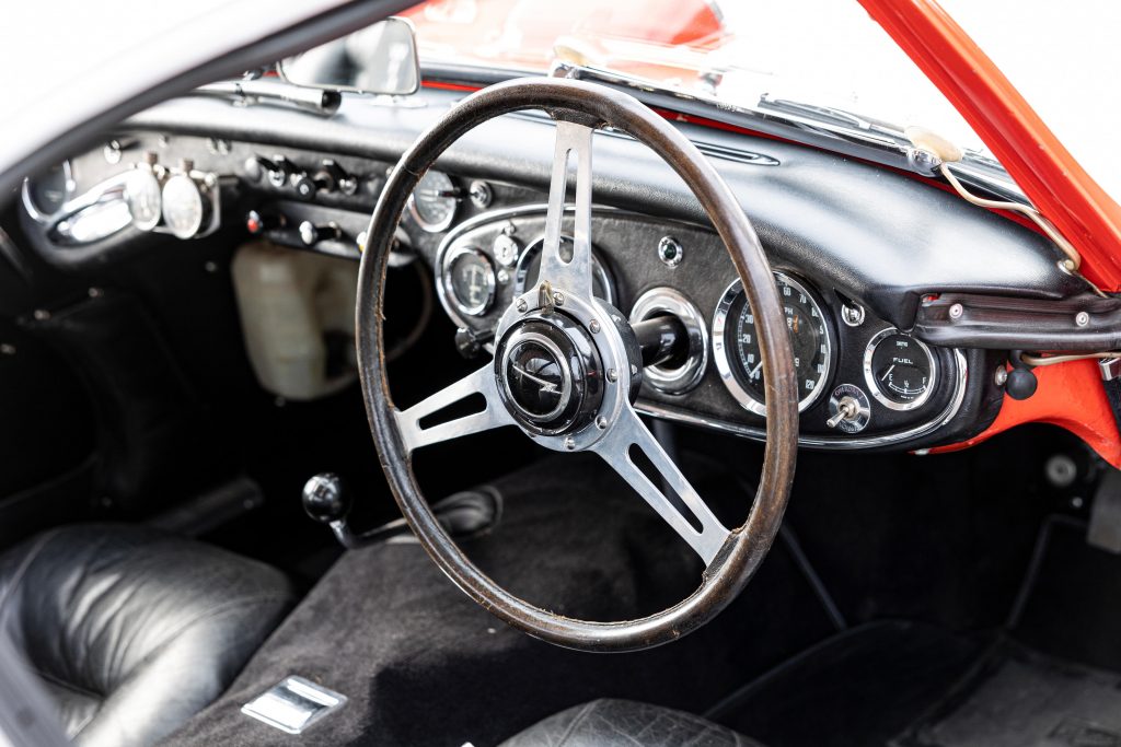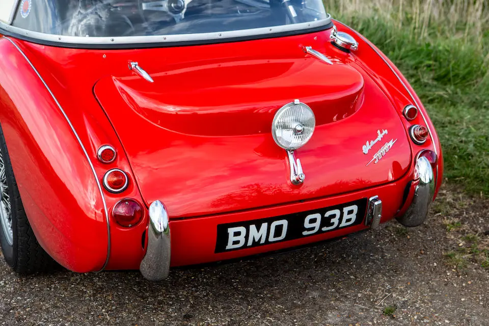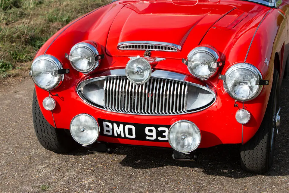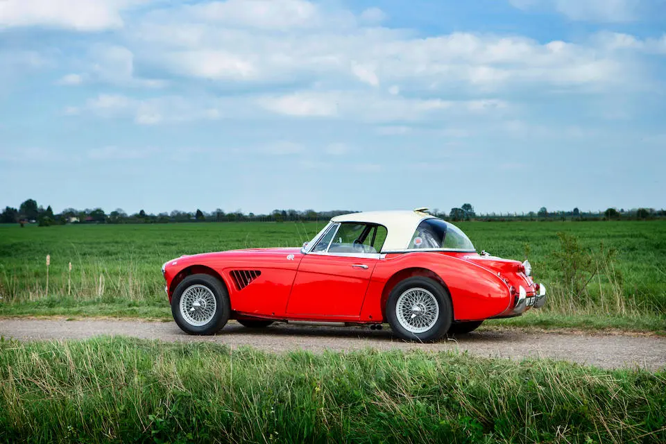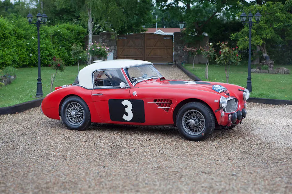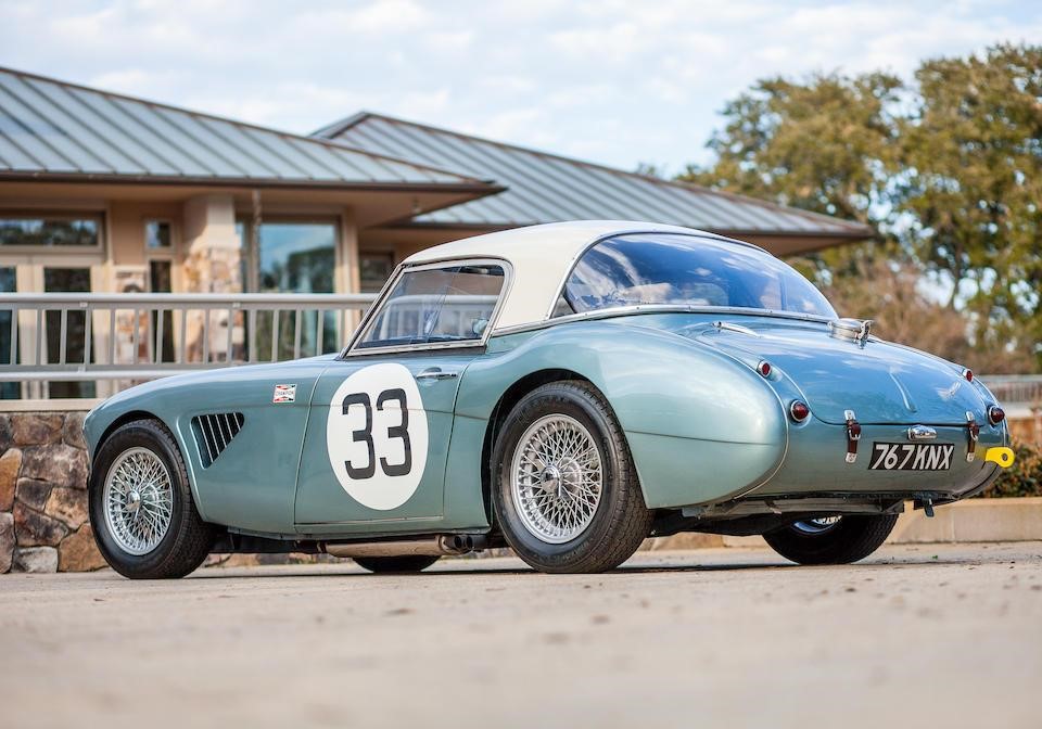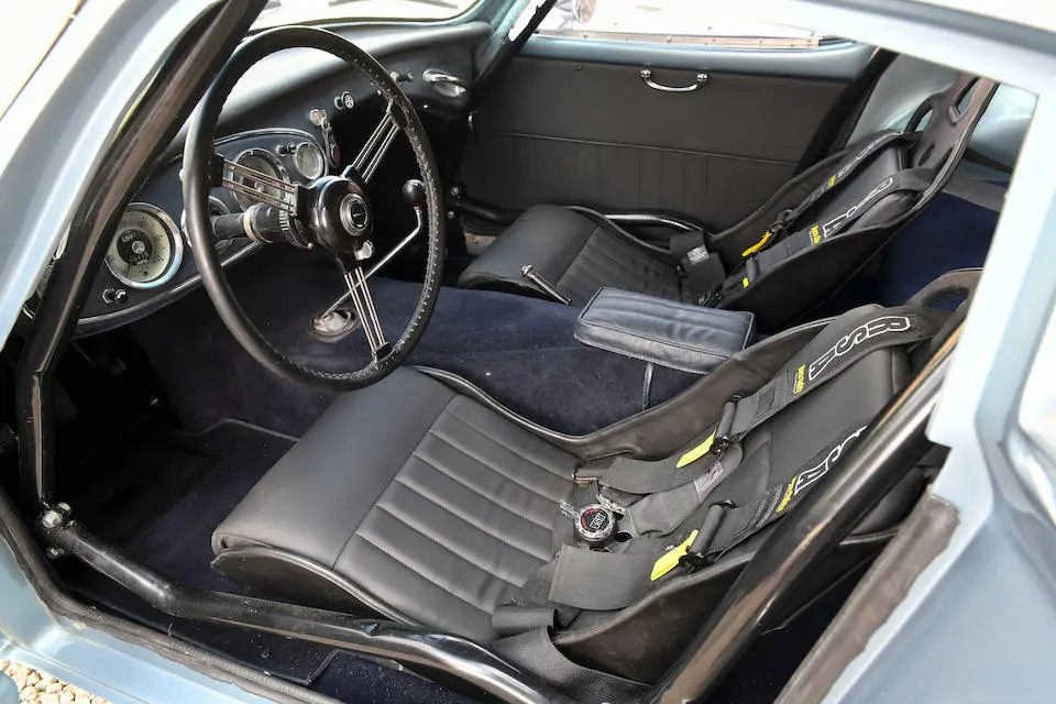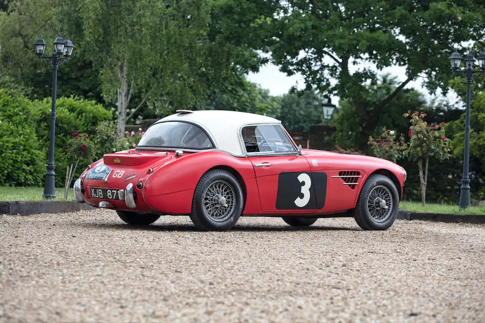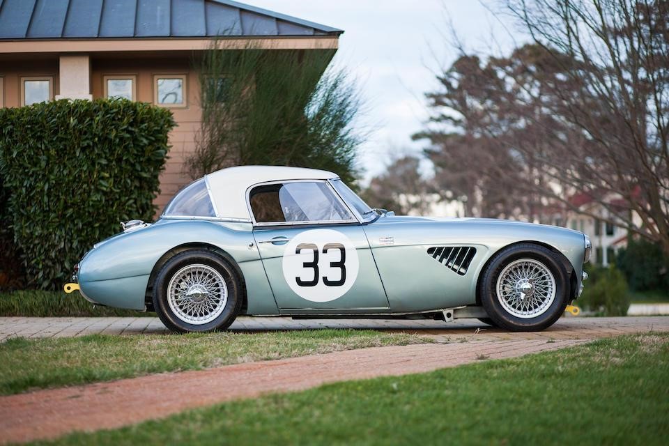 HBJ7 64H-57-2 : 1964, 3000 MK II Lightweight, moteur XSP 2157-2, hardtop fibre de verre, châssis acier mince, ouvrants aluminium, 3 carburateurs double corps Weber, culasse aluminium, levée d’arbres à cames revues, 3 carburateurs double corps Weber 45 DCOE, différentiel autobloquant ZF, boîte de vitesses Racing à 4 rapports rapprochés et overdrive, Healey Ice blue,