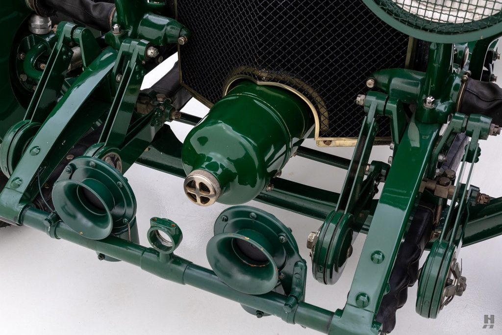 Suspensions avant et arrières à essieu rigide avec ressorts à lames semi-elliptiques longitudinaux et amortisseurs à friction Bentley & Draper.