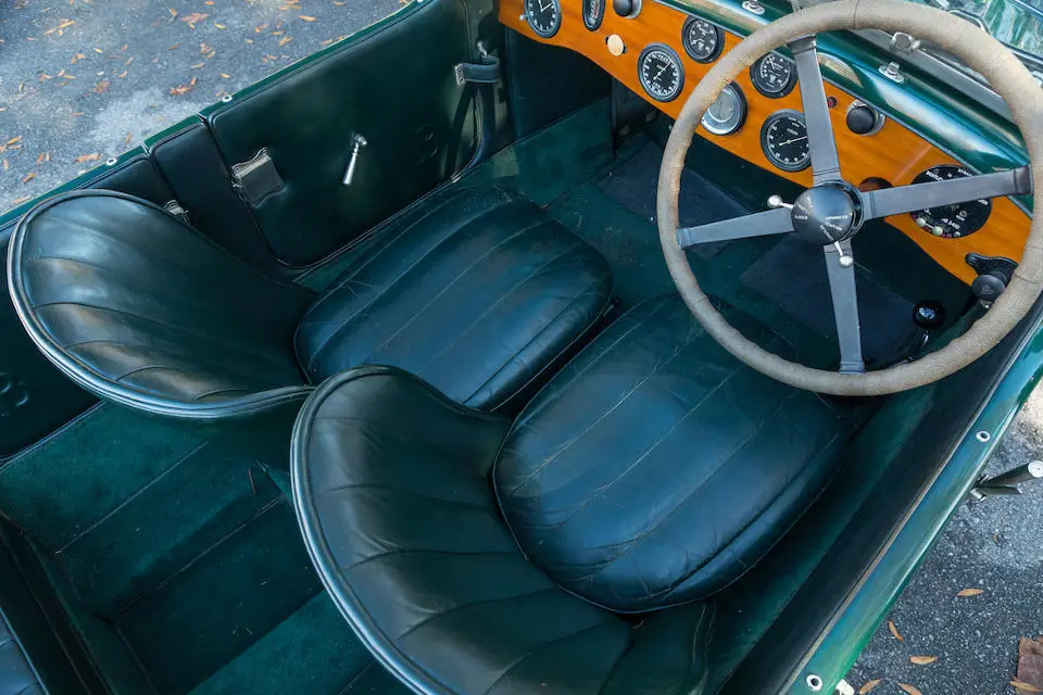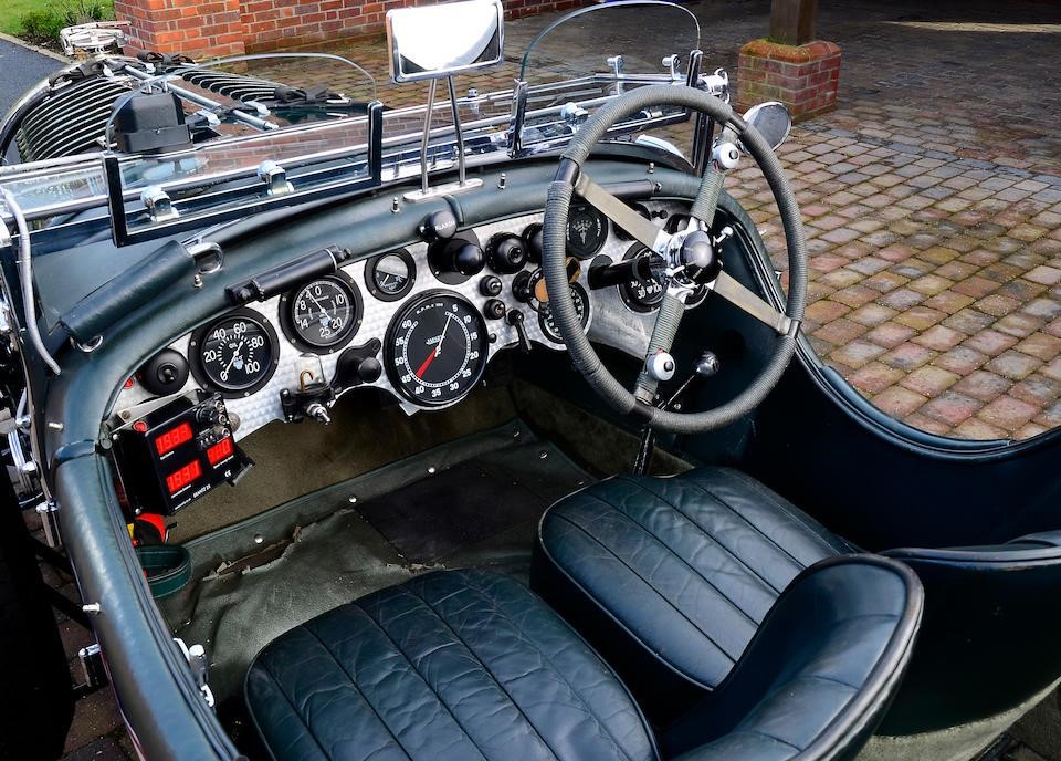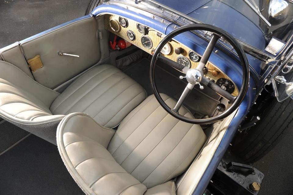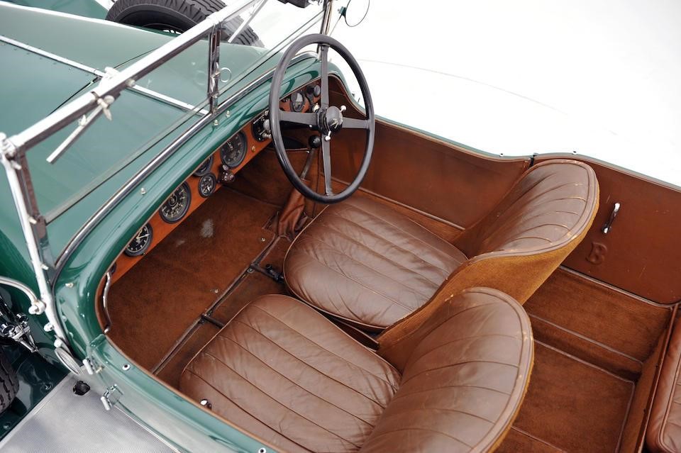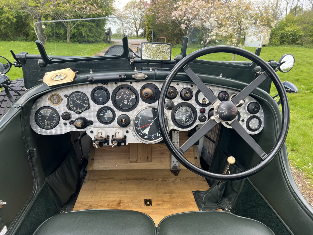 Recarrossée dans le style de la voiture du Mans de Birkin par Townsend (G-B), freins à commande mécanique, châssis standard 10 pieds 10 pouces, overdrive, alternateur, phares à iode.
