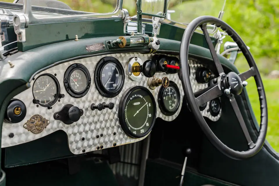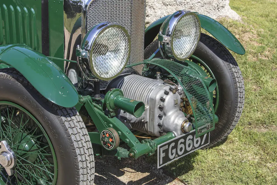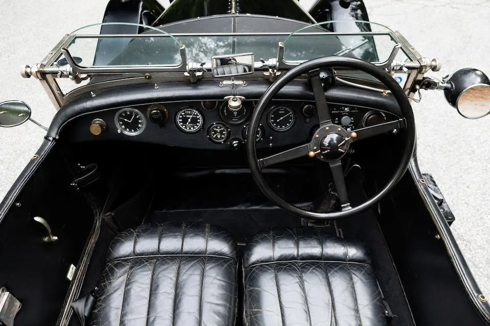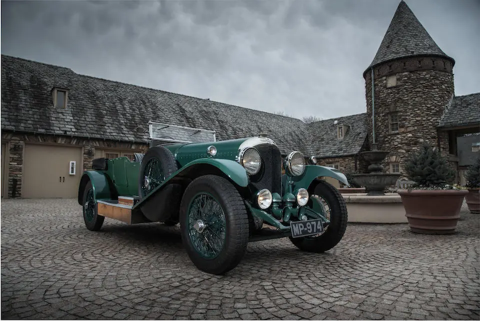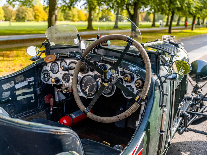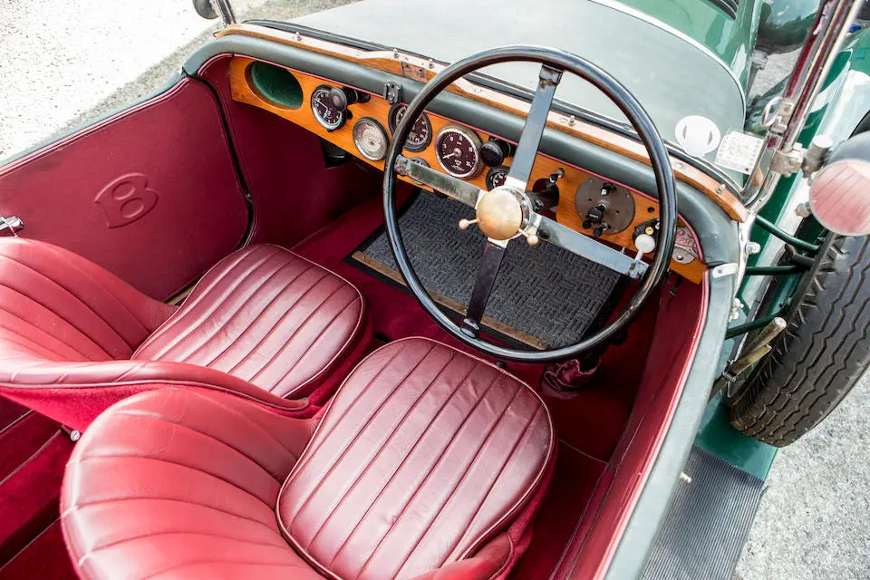 Recarrossée dans le style de la voiture du Mans de Birkin par Townsend (G-B), freins à commande mécanique, châssis standard 10 pieds 10 pouces, overdrive, alternateur, phares à iode.