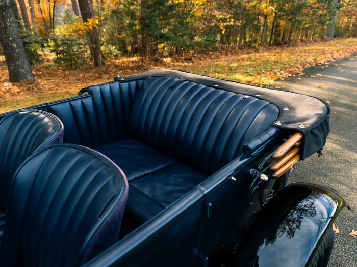 Recarrossée en Tourer, châssis 9 pieds 9 ½ pouces (FT 3214 ?), freins à commande hydraulique.
