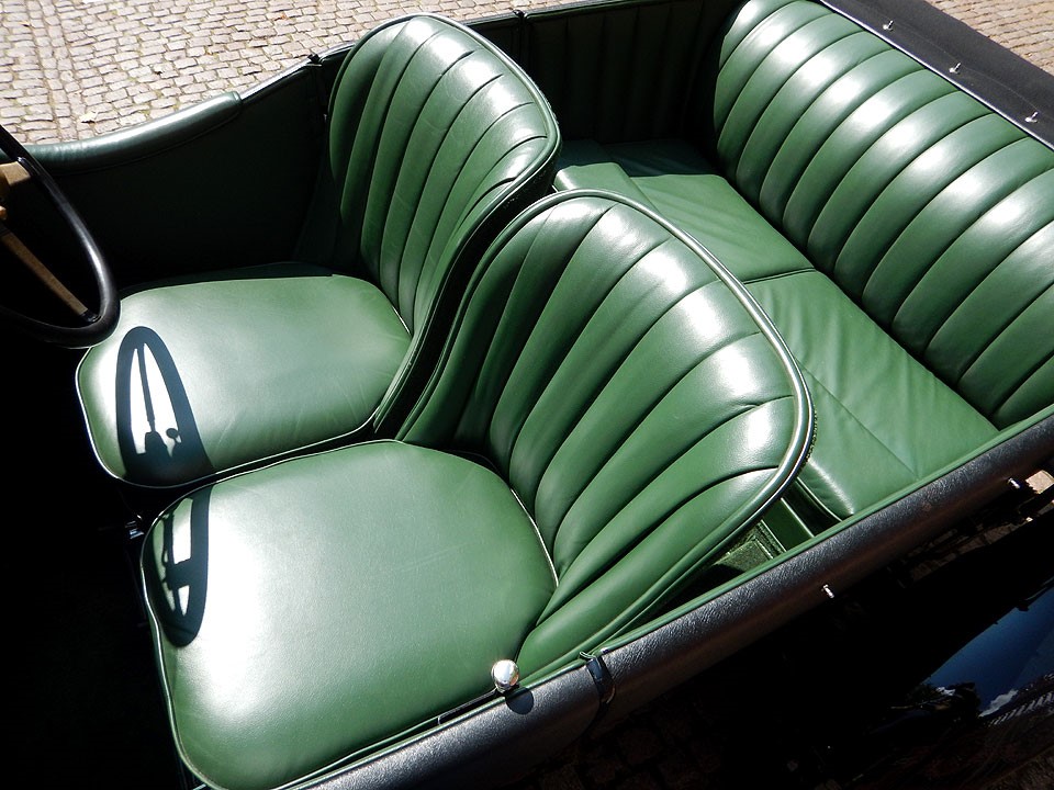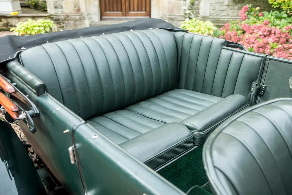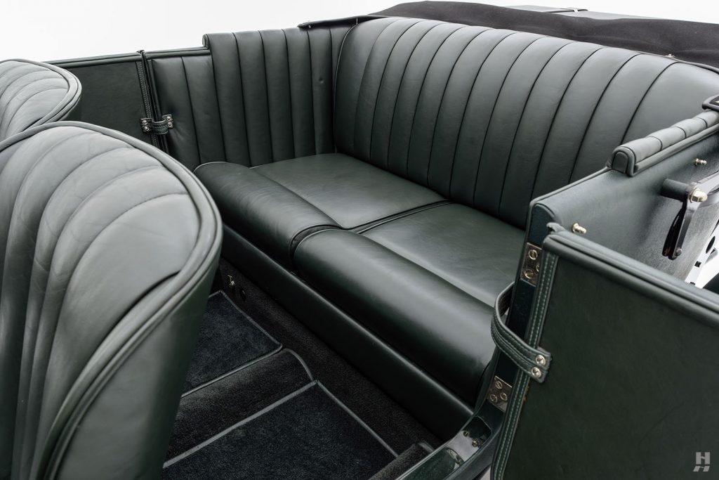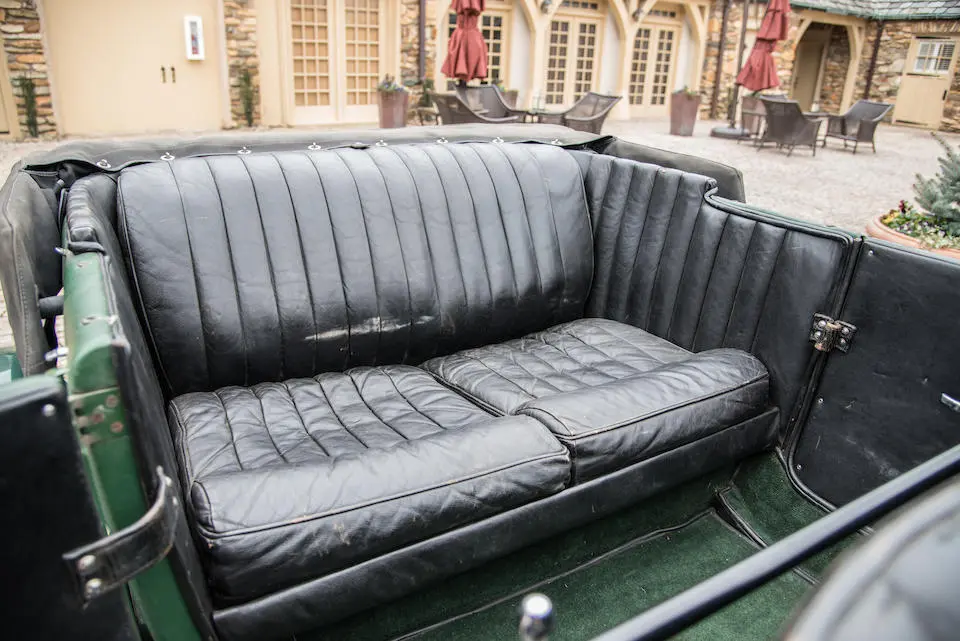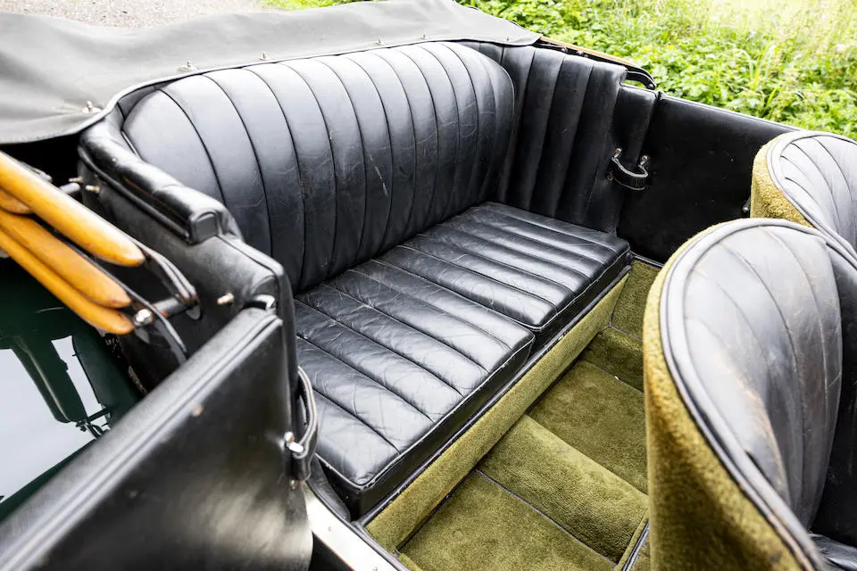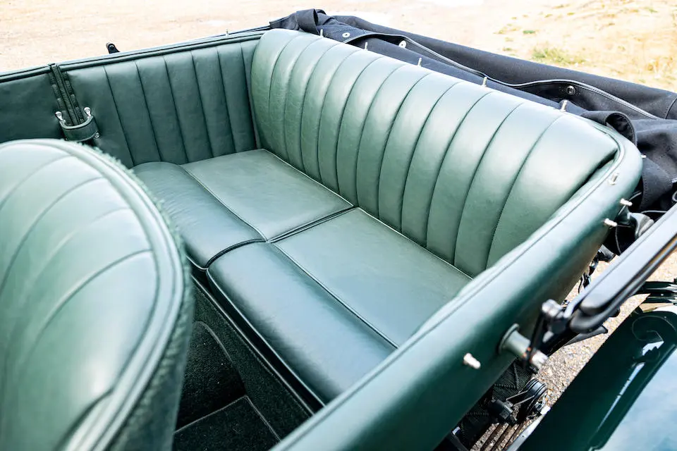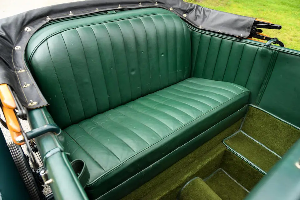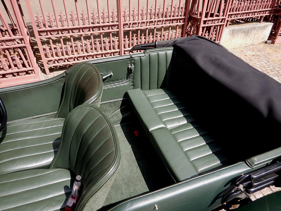 ST 3006 : 09/1927, Open Touring Sorts par Vanden Plas (caisse 1408), système Weymann, roue de secours à l’arrière, ailes, châssis et jantes vertes, caisse vert clair, cuir vert (Connolly n°34), garnitures noires.