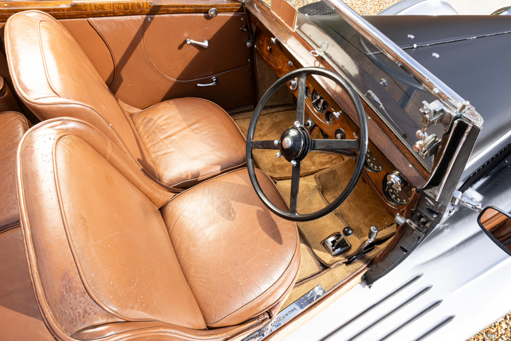 B 185 AE : 1934, 3 1/2l, 3 Position Drophead Coupé par Thrupp & Maberly, Noire, cuir noir, amortisseurs « heavy duty », jantes à voile plein.