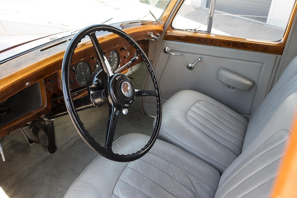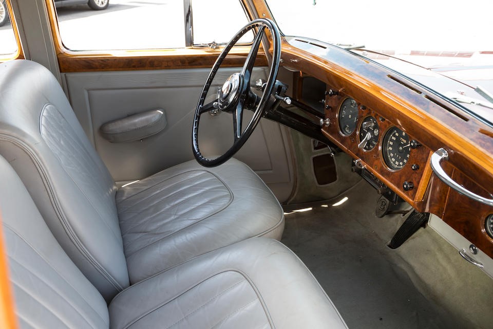 Carrosserie réalisée pour la plupart des voitures par Mulliner, sans mascotte de calandre. A l’intérieur on trouve des sièges baquets à l’avant et la colonne de direction est inclinée à 28°.