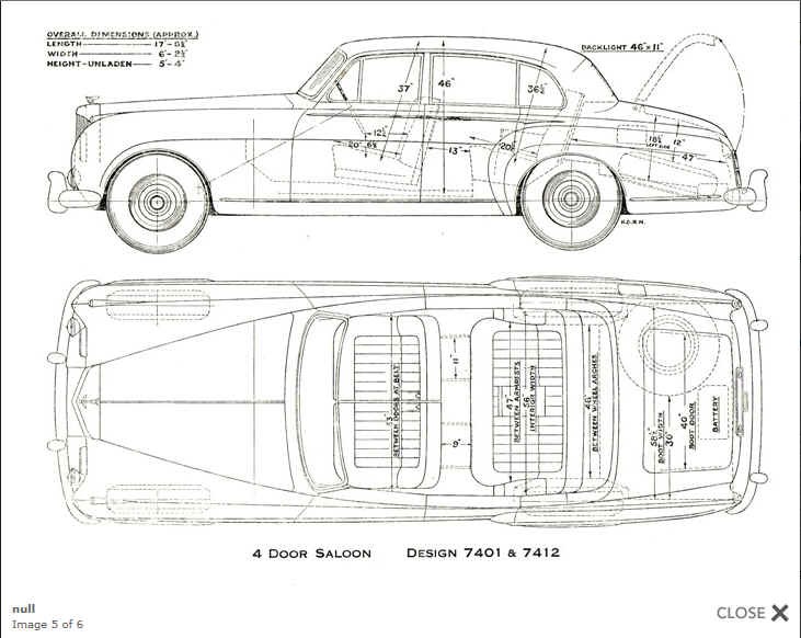 1955 : Présentation de la S 6 light Saloon par H.J. Mulliner, dessin 7401 & 7412 avec carrosserie en aluminium sur plancher en acier. Portes arrières articulées vers l’arrière.
