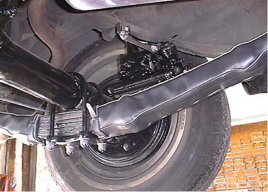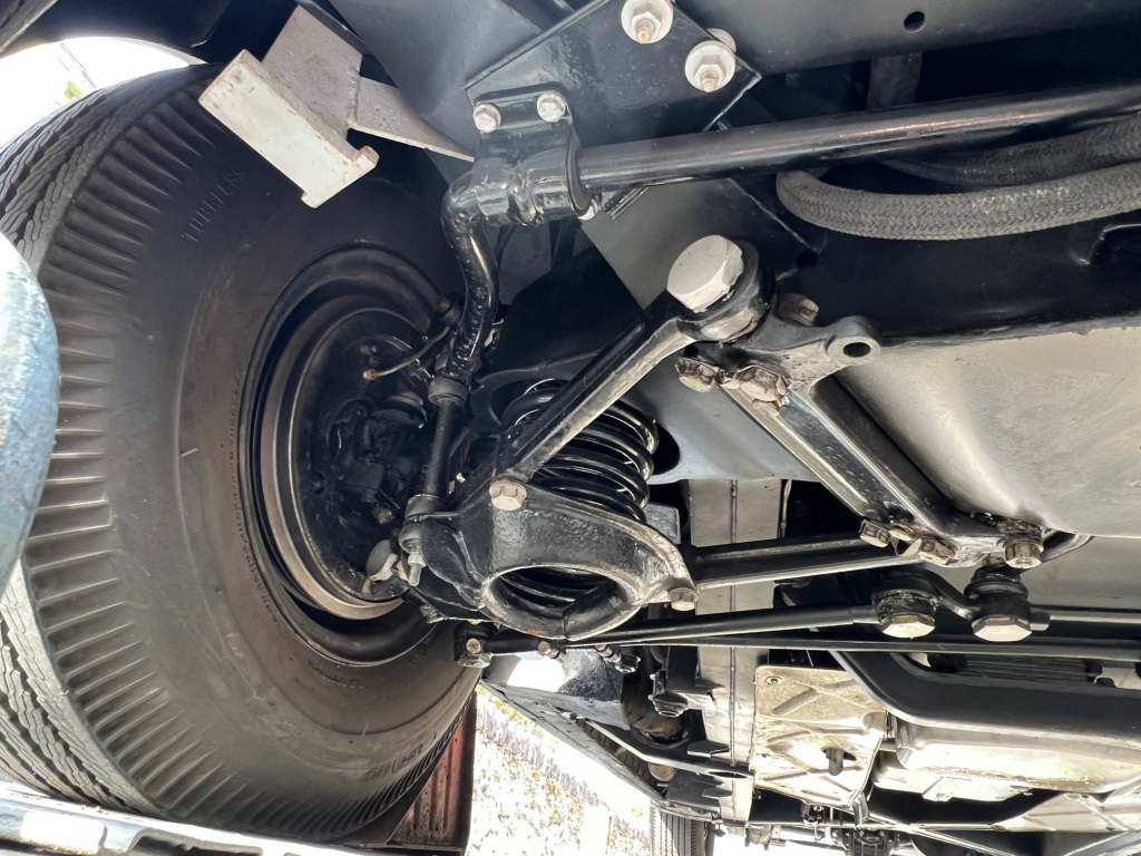 Suspensions arrières par essieu rigide, ressorts semi-elliptiques et amortisseurs réglables par contacteur situé sur la colonne de direction. Ressorts noyés dans de la graisse et enrobés d’une gaine de cuir pour limiter les grincements provoqués par le glissement d ‘une lame sur l’autre.