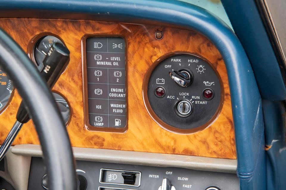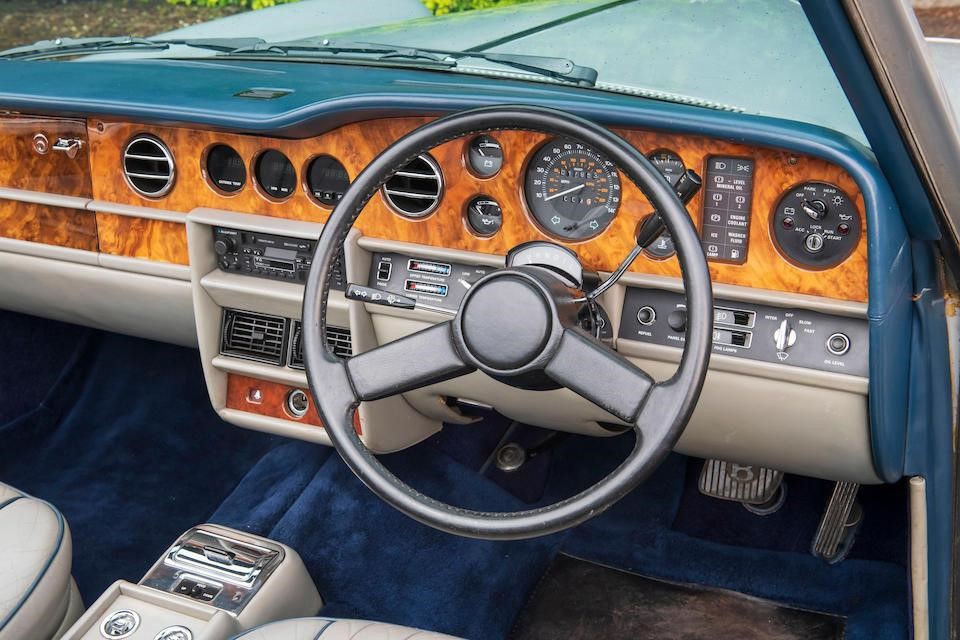 SCBYD0008BCH02873 : 1982, Corniche Convertible Série II, CAD, Georgian Silver, cuir Bleu foncé, capote et tapis de sol bleus.
