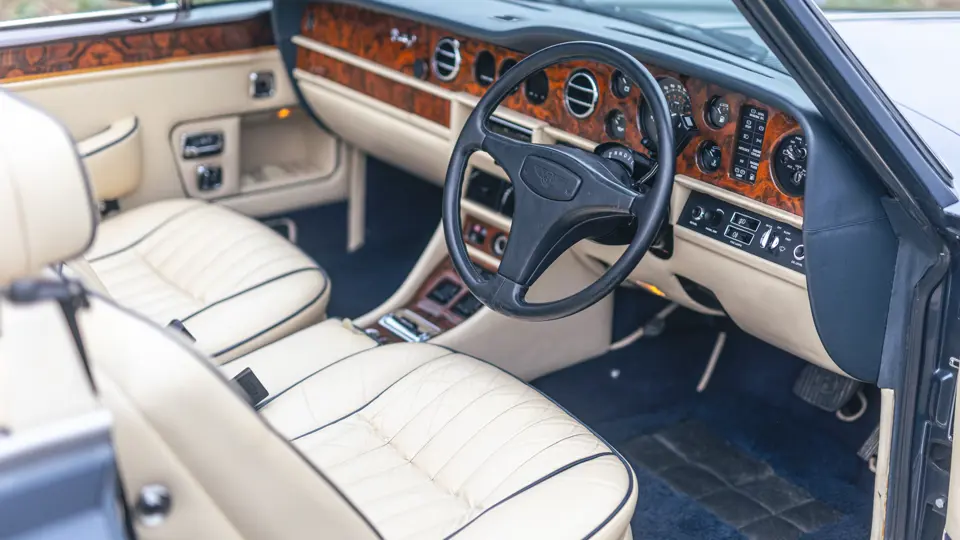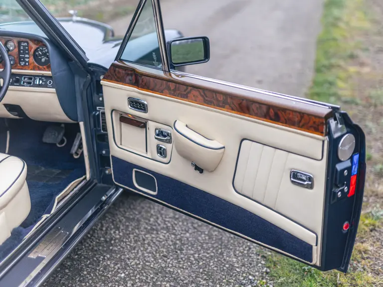 SCBZD00A2JCH24377 : 1988, Continental Drophead Coupé par H.J. Mulliner & Park Ward, CAD, avertisseurs sonores Fiamm, cocktail cabinet et vanity kit dans les contreportes, Windsor Blue, cuir magnolia, capote Everflex crème.