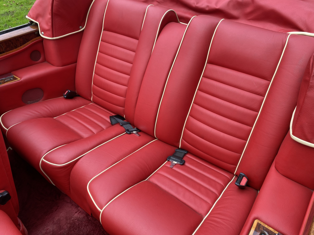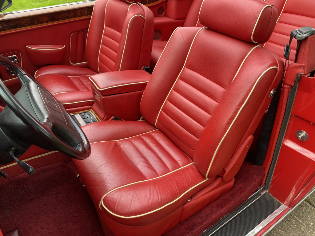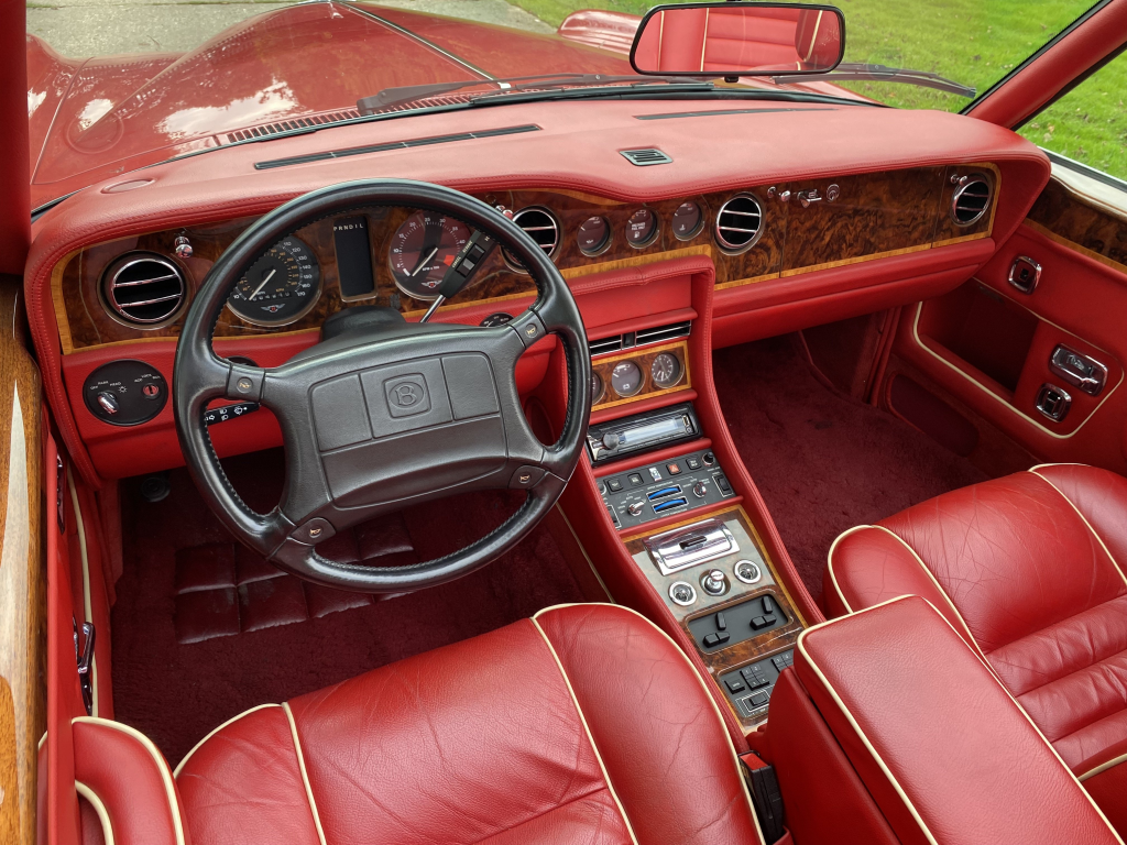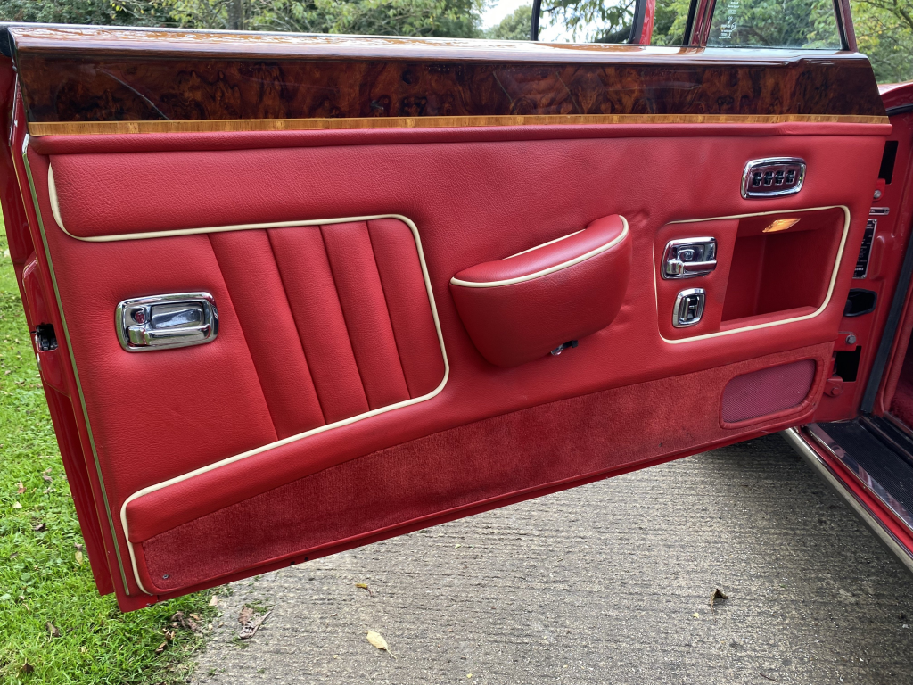 SCBZD00A1LCH30111 : 1990, Continental Convertible, CAD, cocktails cabinets dans chaque contreporte, boiseries érable et noyer, Tudor Red, cuir magnolia à passepoils rouges.