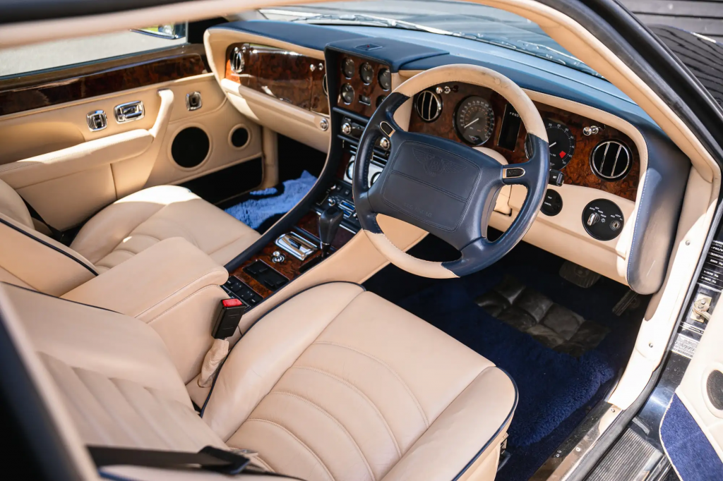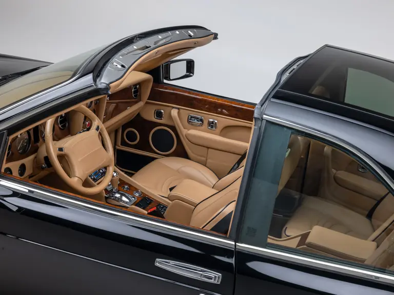 SCBZU26C1WCH67006 : 1997, T, moteur 9241L410M-TTW ; rétroviseurs couleur de la caisse ; moyeu de volant, console, bas du tableau de bord, ciel de toit, plage arrière garnis de cuir Champagne, contreportes cuir Champagne et ronce de noyer, Black Saphire Mica, cuir Champagne à passepoils noirs.