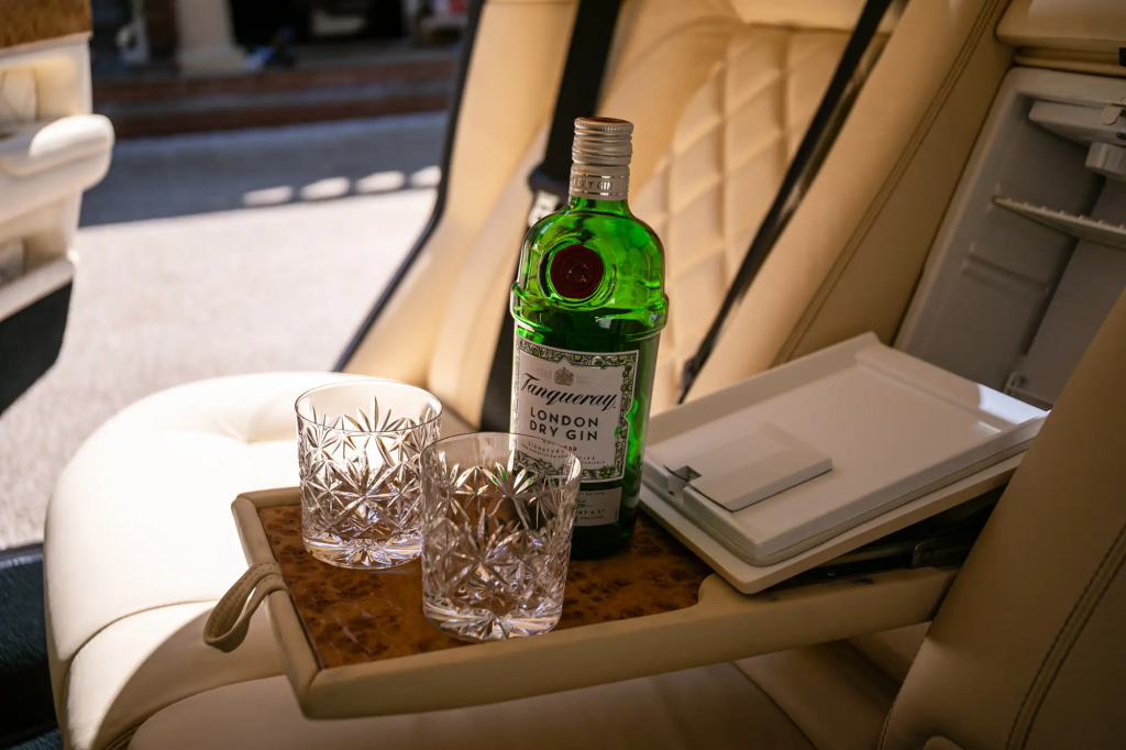 SCBLF45F19 CX14265 : 2009, Arnage T Final Series, 1/96, 1/69 CAG, vitres fumées, entourage de radiateur chromé, accoudoir central arrière contenant une flasque et 4 gobelets en métal argenté, Porcelain Metallic, cuir lin.