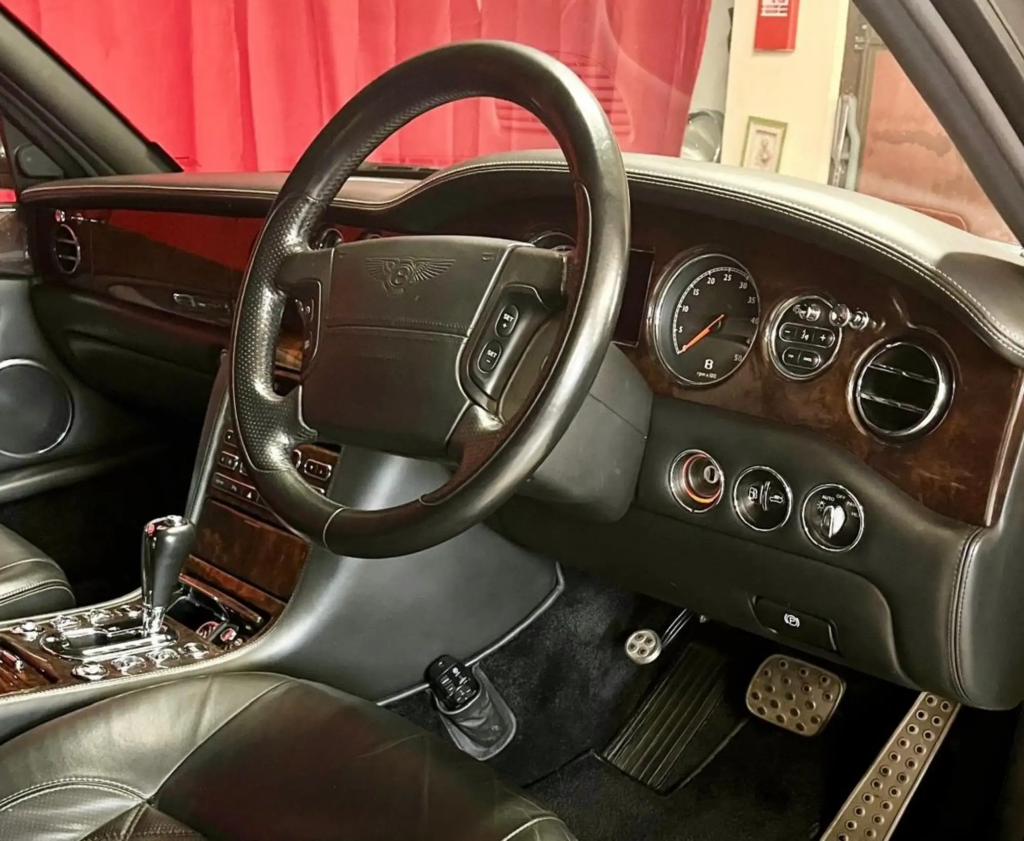 SCBLF45F87CH12349 : 2007, Arnage T Mulliner Phase II, moteur 200379, CAD, échappement 4 sorties, ouïes de bouclier avant, rétroviseurs extérieurs chromés, toit ouvrant électrique, 4 parapluies dans la malle, pédalier aluminium ajouré, miroirs sur montants de custode arrière, garnitures piano black, tableau de bord et tablettes arrière ronce, appuie-tête av./arr. brodés du B ailé, système vidéo arr., stores arr. à commande électrique, jantes 19″ démontables en 2 parties Diamond, badges Mulliner, Tungsten Grey Metallic, cuir Beluga Black.