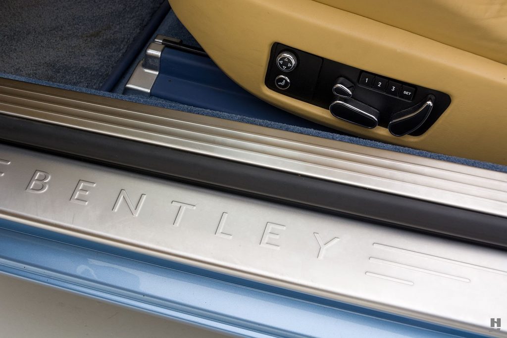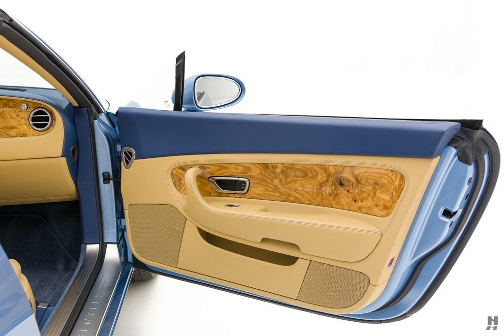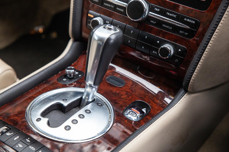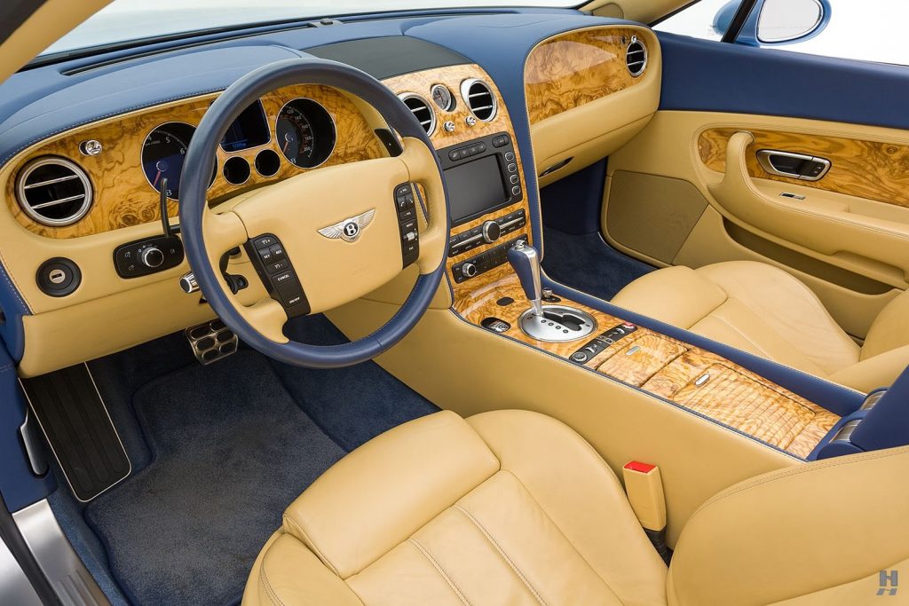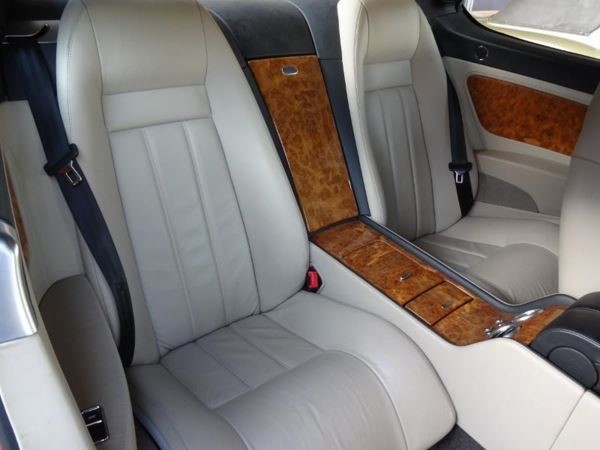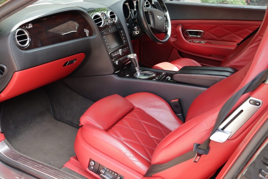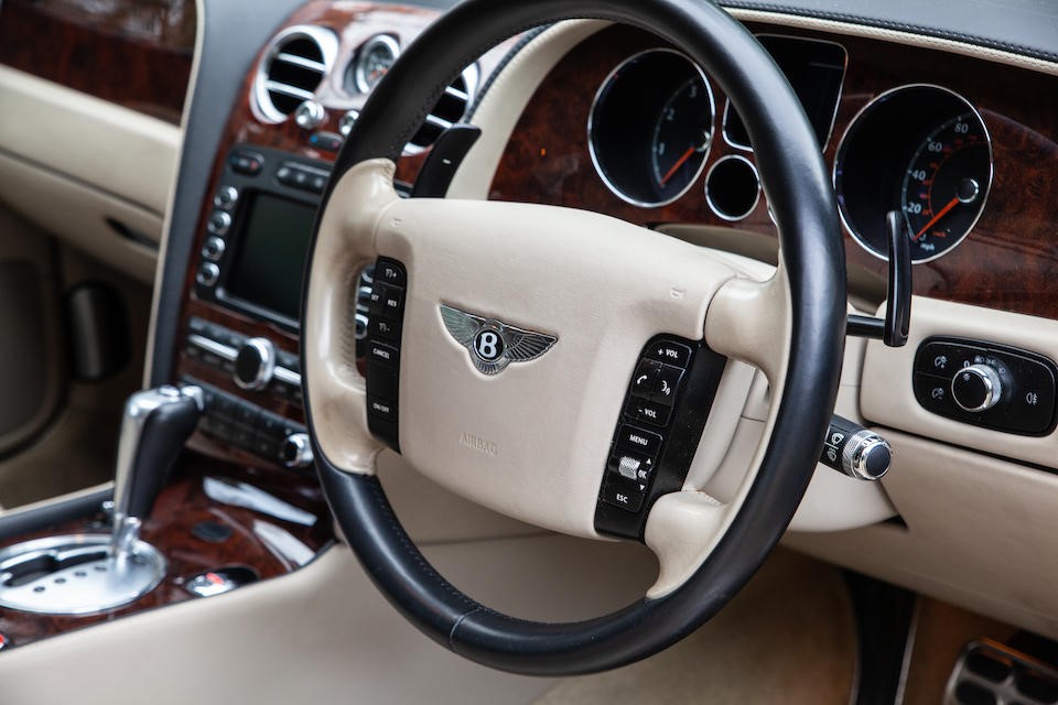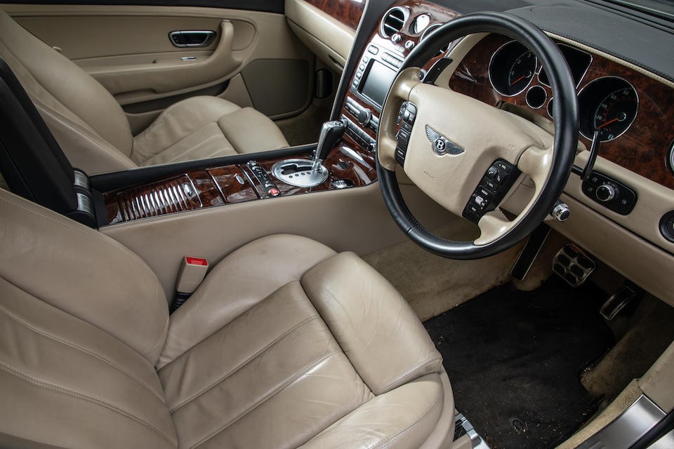 Pédalier ajouré, repose-pied conducteur ; garnitures et boiseries bicolores ; sièges, contreportes et panneaux arrières en cuir matelassé ; dossier de siège avec emblème Bentley brodé.