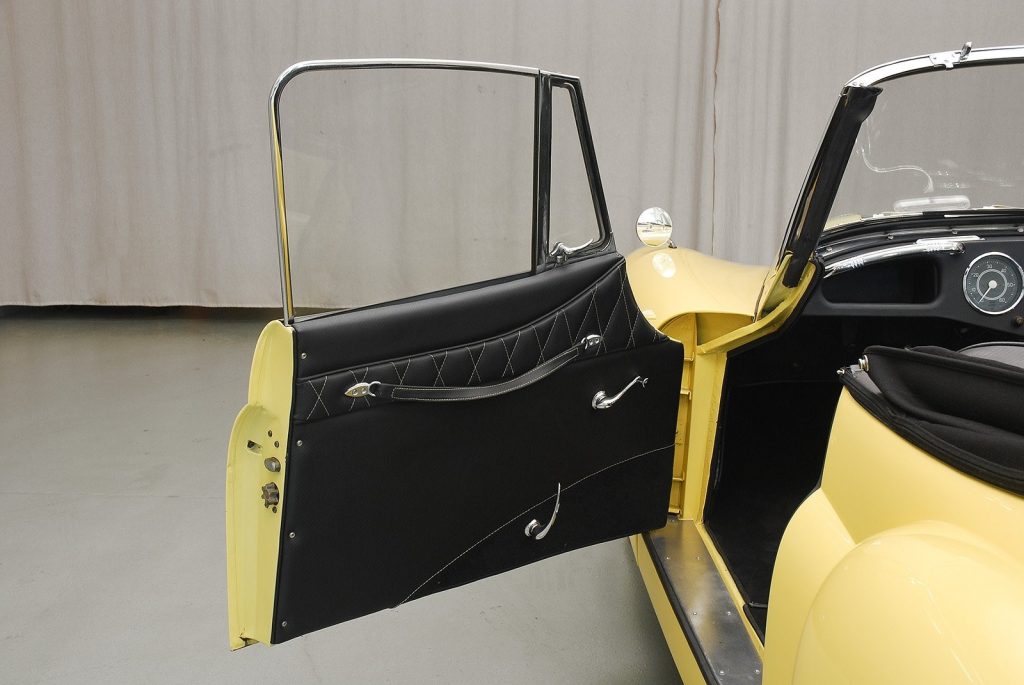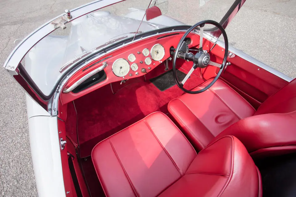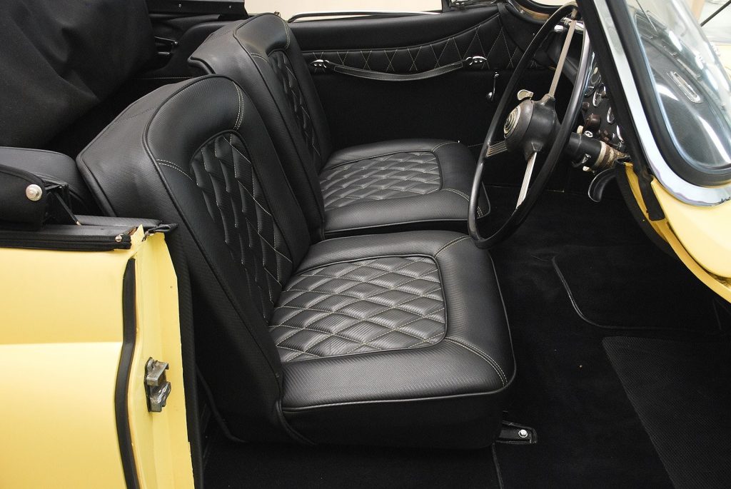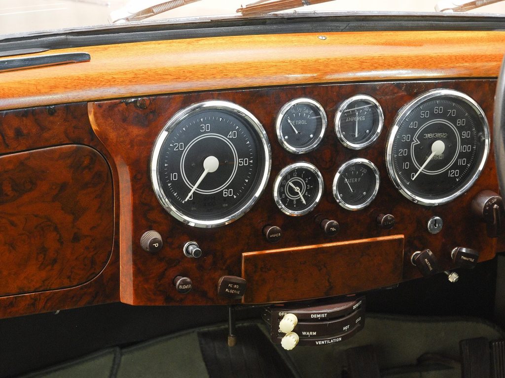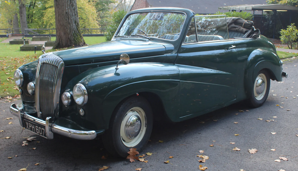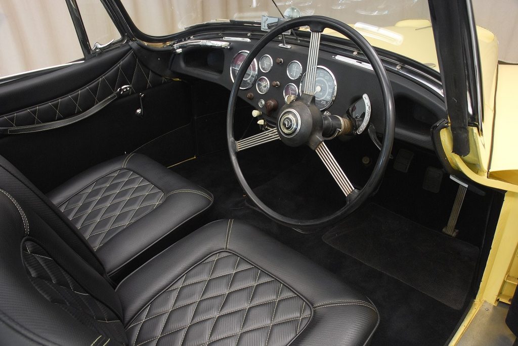 10/1955 : Salon de Londres, Earls Court (G-B) : Le Roadster est remplacé par la New Drophead Coupé avec 3e siège à l’arrière, capote, découpe de portières plus haute et plus angulaire, pare-brise encadré de deux déflecteurs latéraux. Carrosserie en acier jusqu’aux déflecteurs avant et aluminium pour le reste sauf les passages de roues arrières.