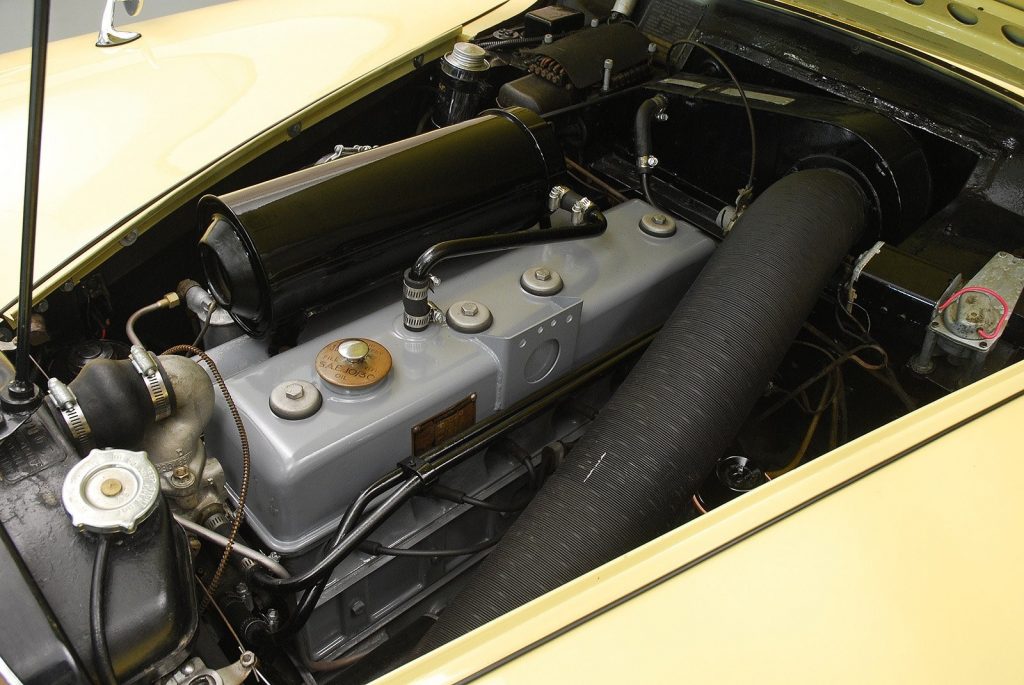 Culasse en aluminium à soupapes en tête de plus gros diamètre et levée des arbres à cames augmentée. Alimentation par 2 carburateurs SU, 100 chevaux à 4400 tours, taux de compression porté à 7,5 :1.