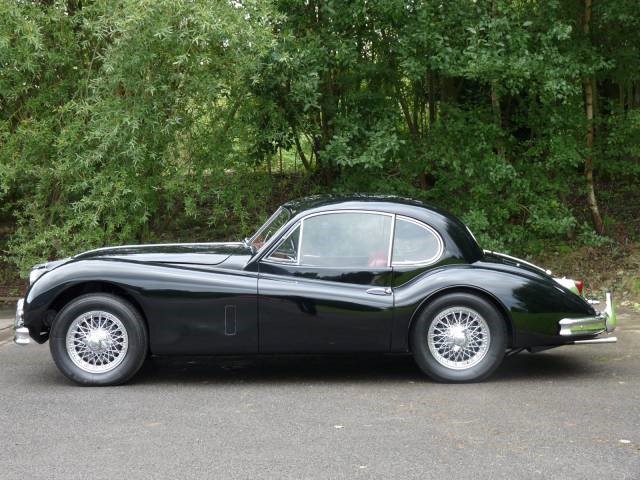 Présentation au Salon de Earl’s Court à Londres (G-B) en octobre 1953. La XK140 est une évolution de la XK120 qu’elle remplace. Elle est disponible immédiatement en version coupé, roadster et cabriolet. Le coupé reçoit un habitacle agrandi pour en faire une 2+2 par diminution de la taille du coffre et de la longueur du capot.