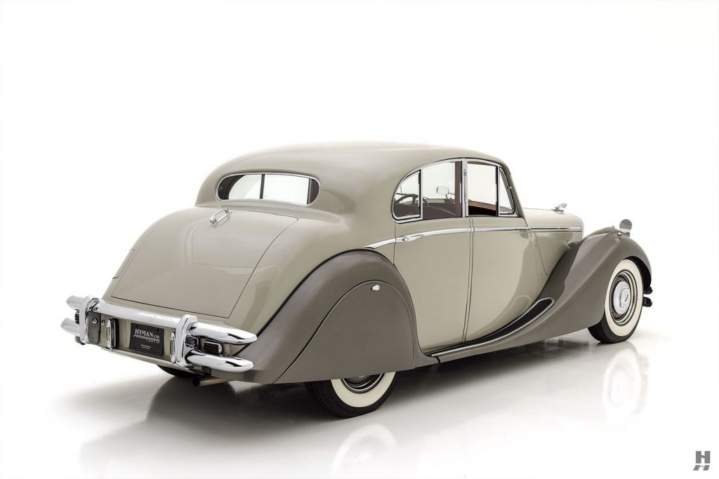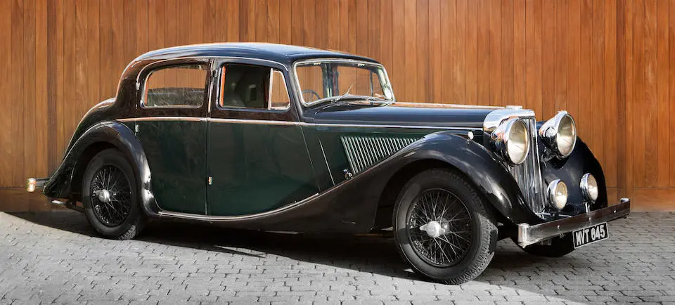 Les chaîne de l’usine de Coventry reprennent leur activité en juillet 1945, les premières voitures sont achevées 3 mois plus tard. Les nouveaux modèles sont dérivés des SS Saloon de 1937 à 1940. Elles abandonnent le logo SS au profit du Jaguar.