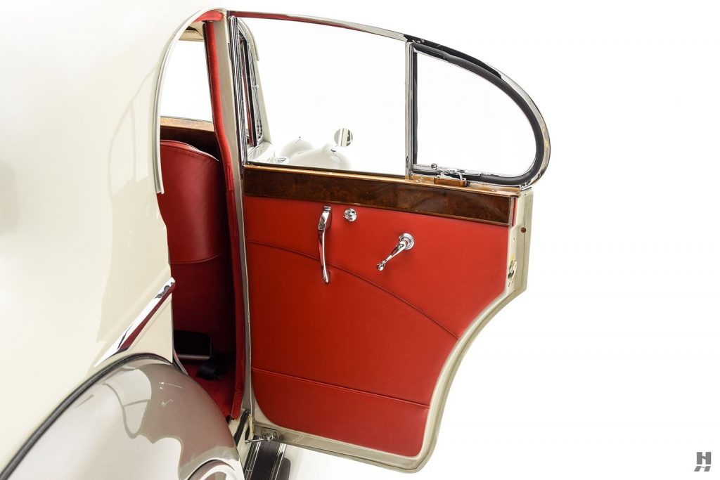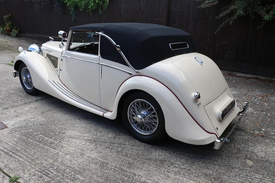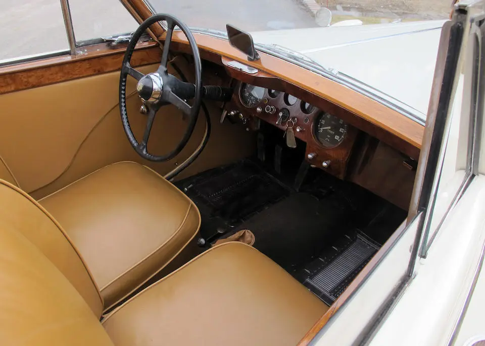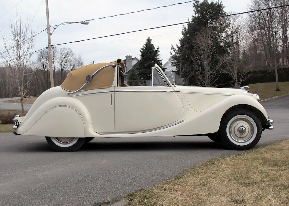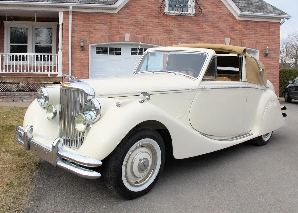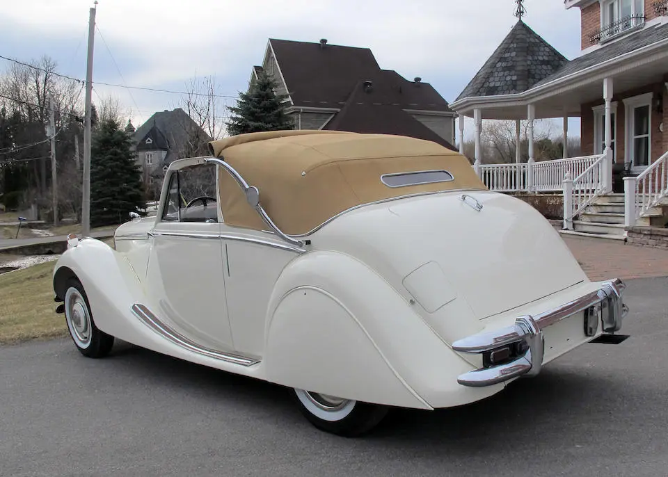 12/1947 : La MK IV est disponible en cabriolet 3 positions avec moteur 2 ½ ou 3 ½ litres, 2 portes, 4/5 places (Drophead Coupé). La ligne est reprise des modèles d’avant-guerre avec changement des logos SS par Jaguar et sigle J estampé dans le pare-chocs arrière.