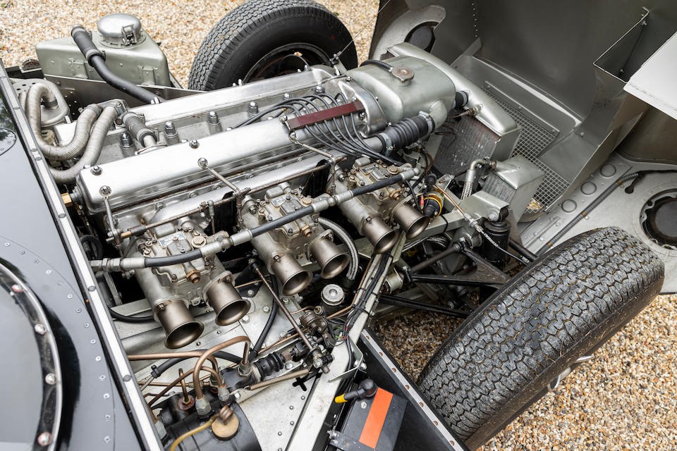 6 cylindres en ligne XK de 3,4 litres, bloc en fonte et culasse en alliage léger. Vilebrequin sur 7 paliers de 70 mm de diamètre en acier forgé. 7 paliers renforcent la rigidité de l’ensemble et améliorent la lubrification des manetons qui disposent d’une alimentation propre en lubrifiant. Etanchéité du palier arrière par 2 demi-coquilles en aluminium encerclant un joint en amiante. Damper d’équilibrage.