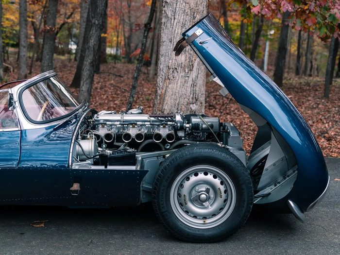 La carrosserie aluminium est dessinée par Malcolm Sayer (ex-Bristol) en s’inspirant des derniers développements de l’aérodynamique, y compris dans l’aéronautique et testés dans les tunnels.