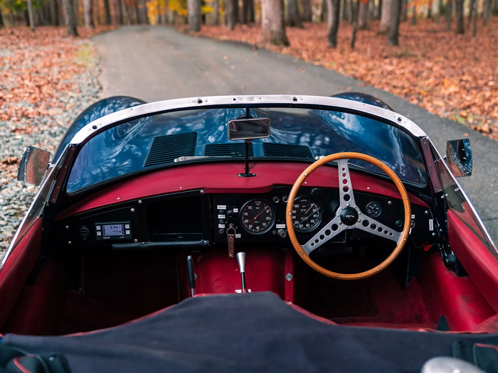 La XK SS abandonne l’appuie-tête profilé et la dérive arrière des D Type ainsi que la séparation centrale longitudinale de l’habitacle. Elle reçoit une portière passager et des bananes de pare-chocs chromées, et enfin une petite capote. Un pare-brise en 1 partie et des vitres latérales sont également montés, et l’aménagement intérieur est plus confortable.